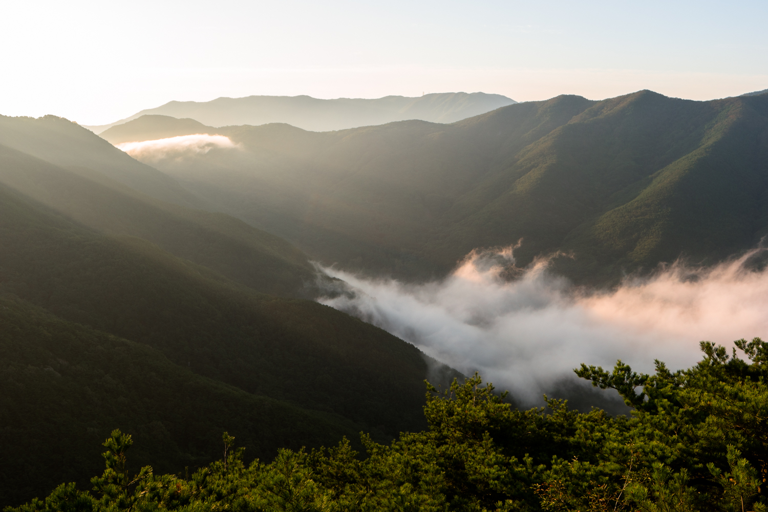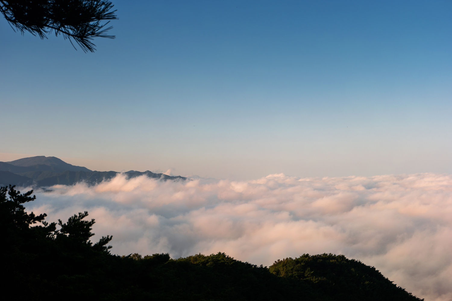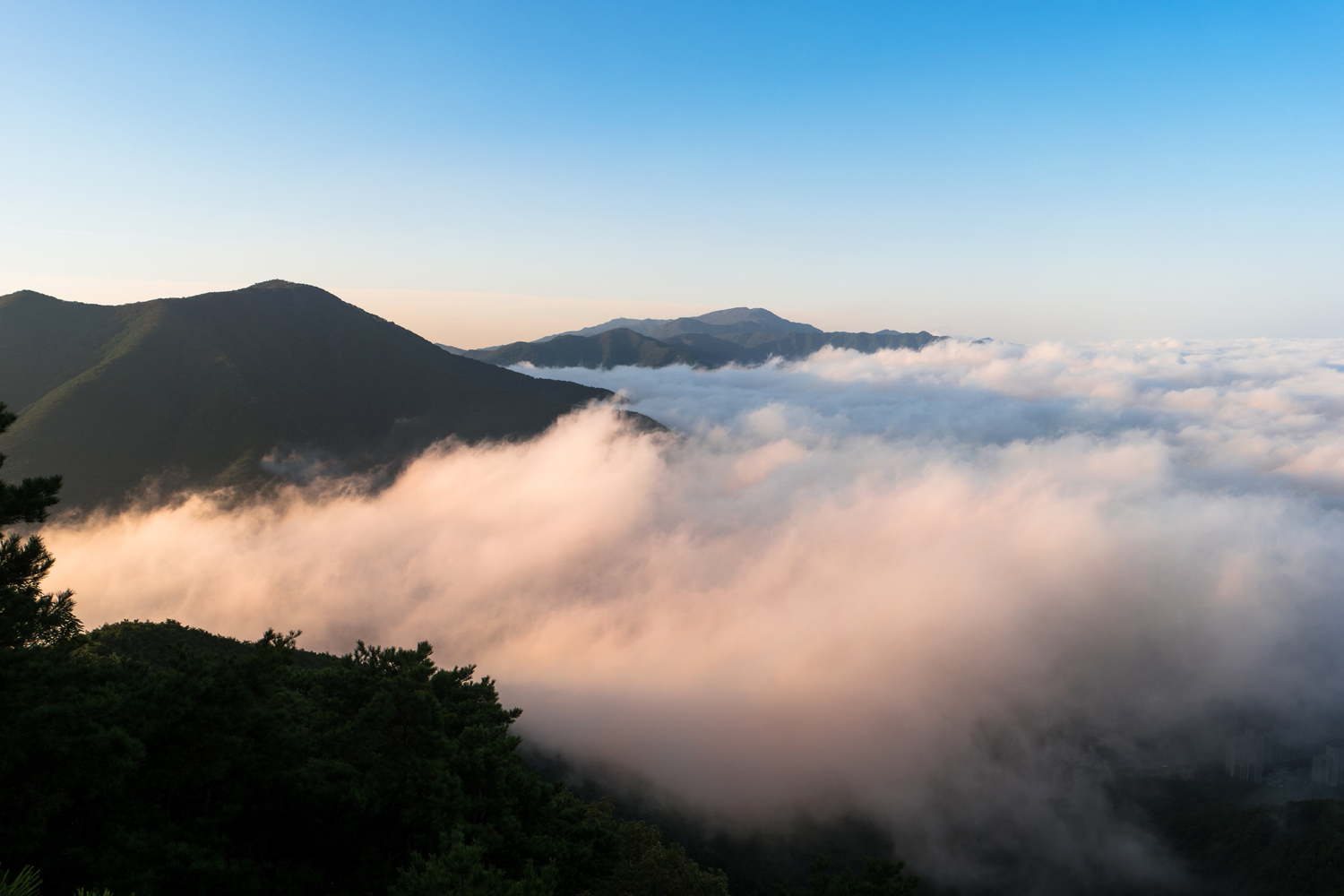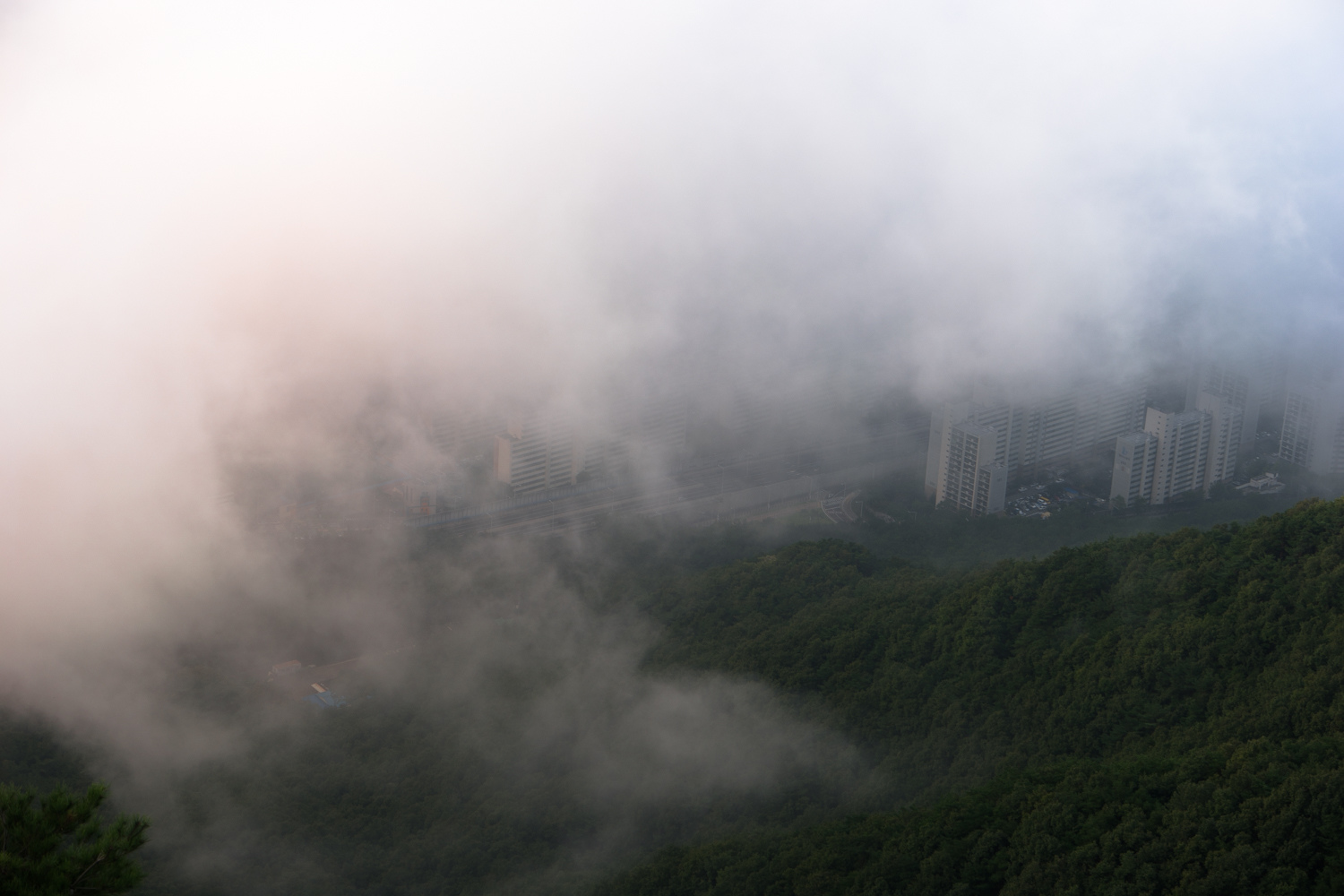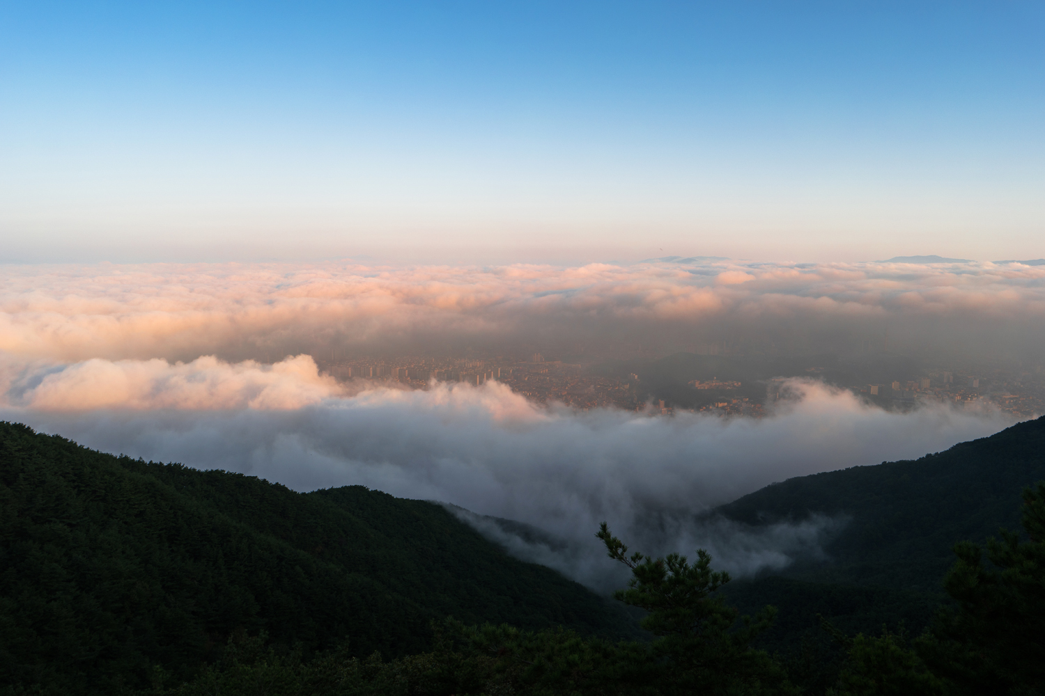 계획에 없던 평일 산행이라 너무 늦게 올라 운해가 도시 전체를 덮어 버렷네요 ㅠ