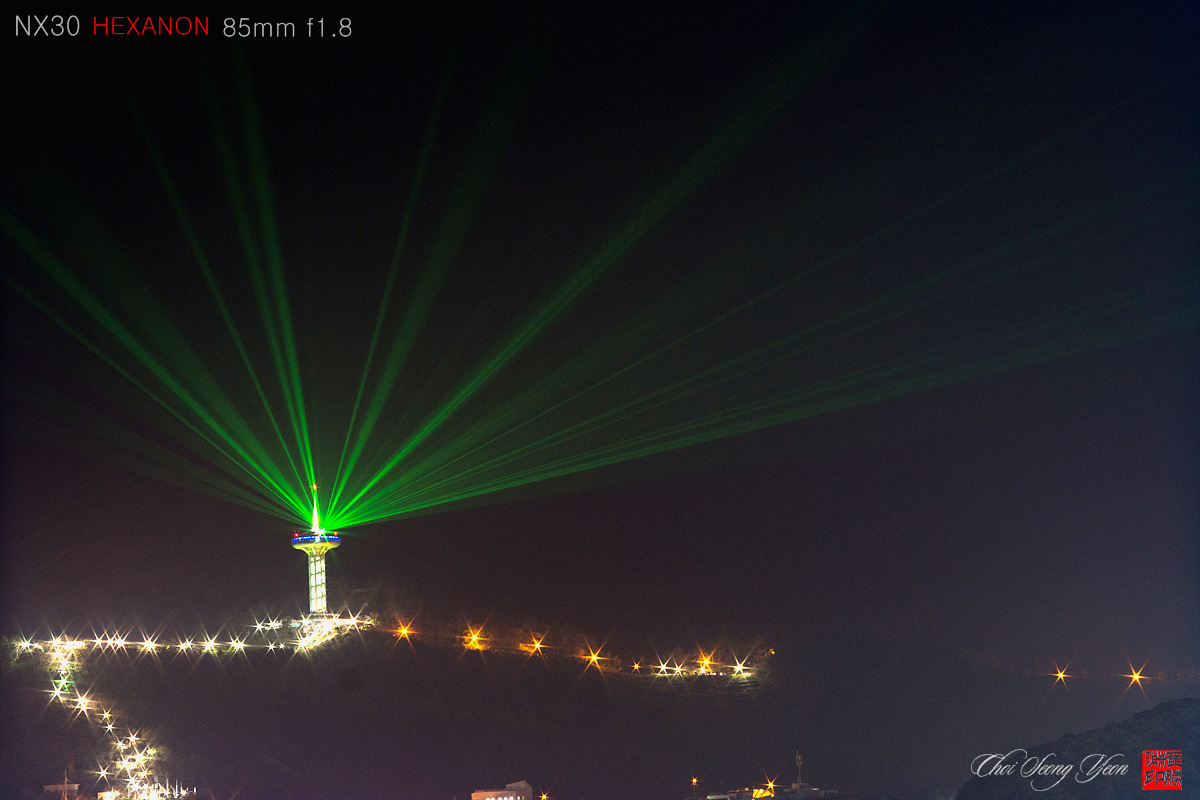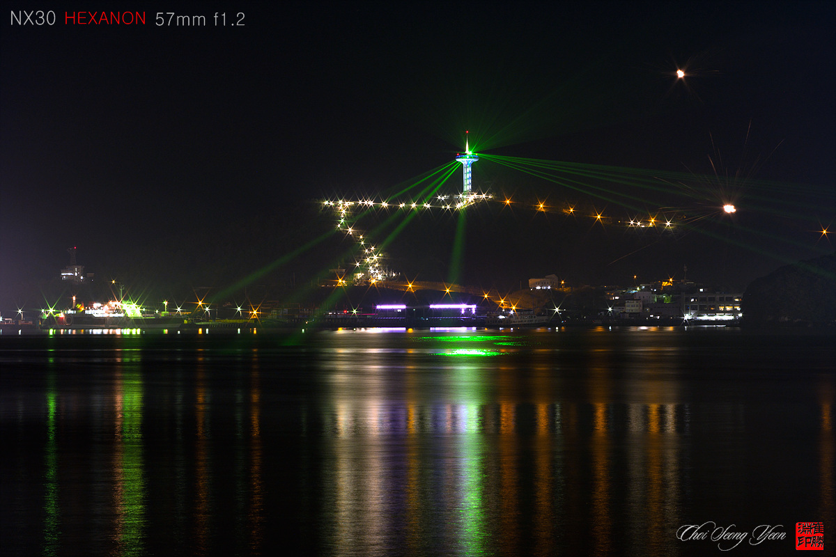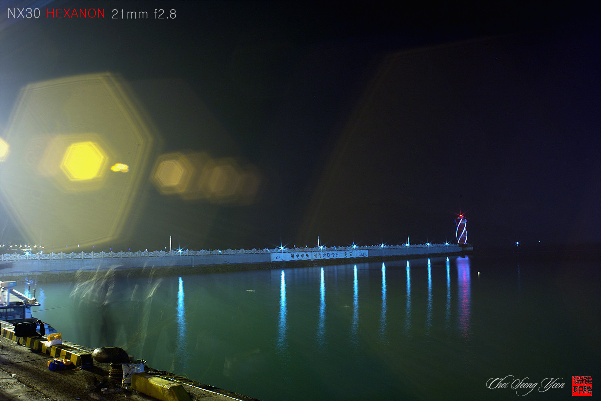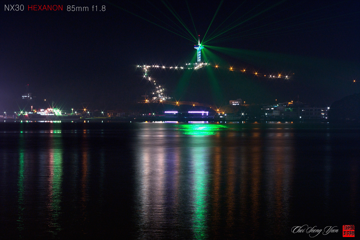 등대의 푸른 빛과 반짝이는 불빛이 환상적인 야경을 HEXANON 님이 장노출로 만들어낸