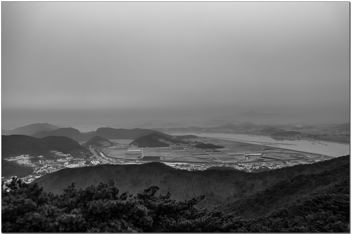 미세먼지 가득에 흐리고 눈발까지 날리네요.