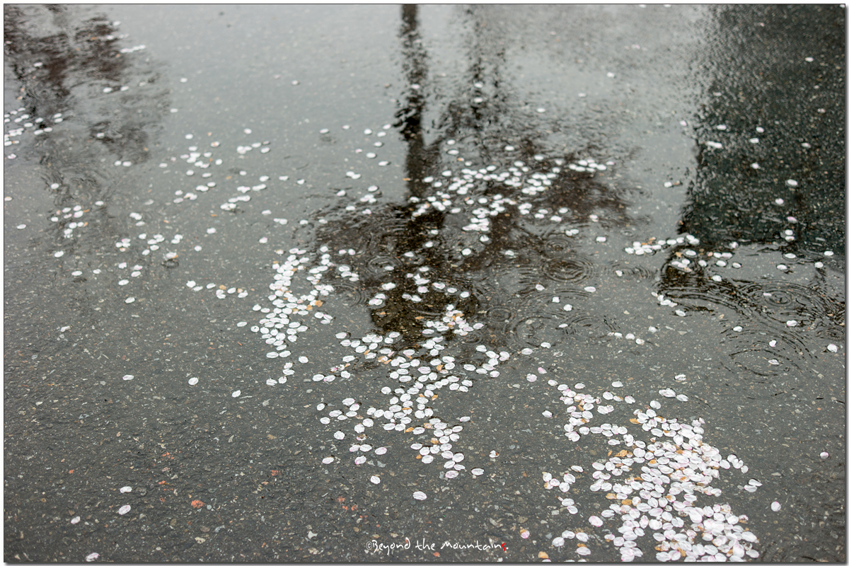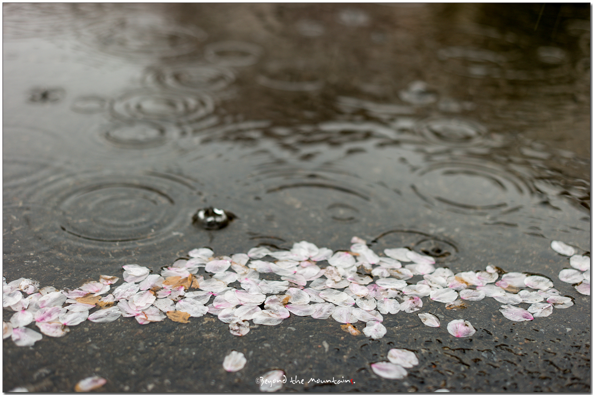 봄비에 벚꽃잎이 떨어지고 있습니다.