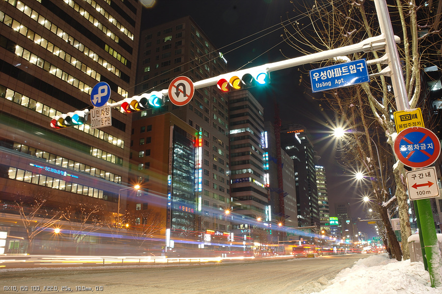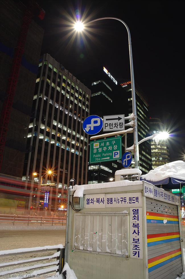 야간 샷 몇장 올려봅니다. 18-55의 경우 야경 빛갈라짐을 얻을려면 적어도 F11.0 까지는 조여주어야 하더군요.