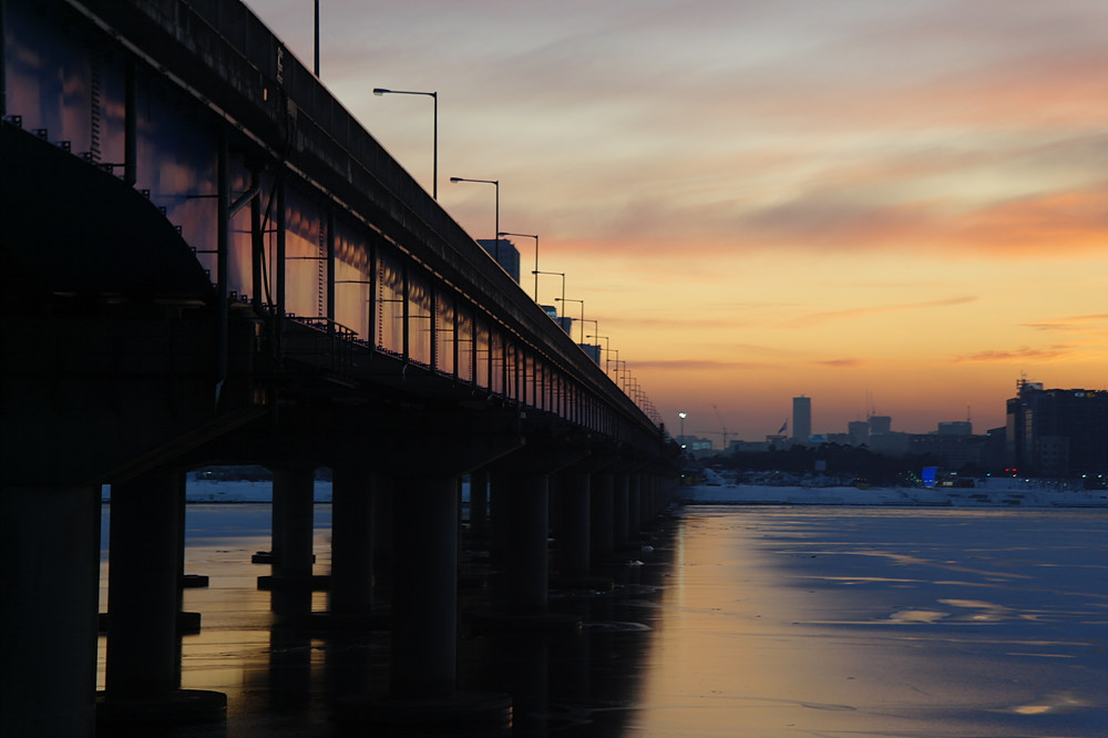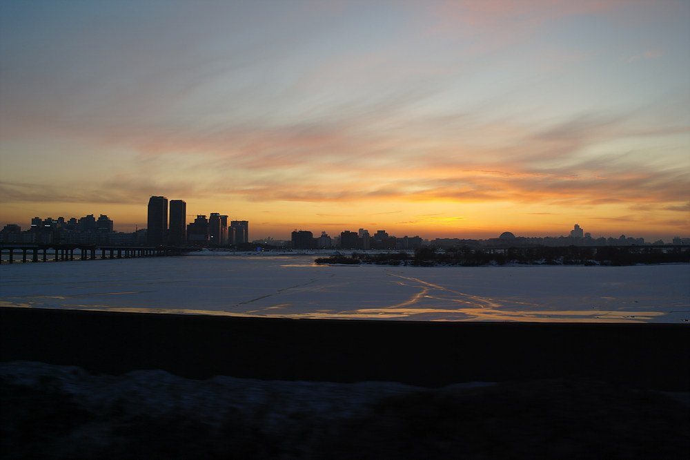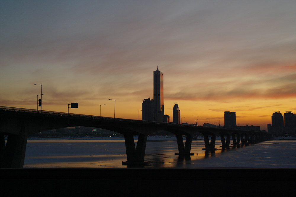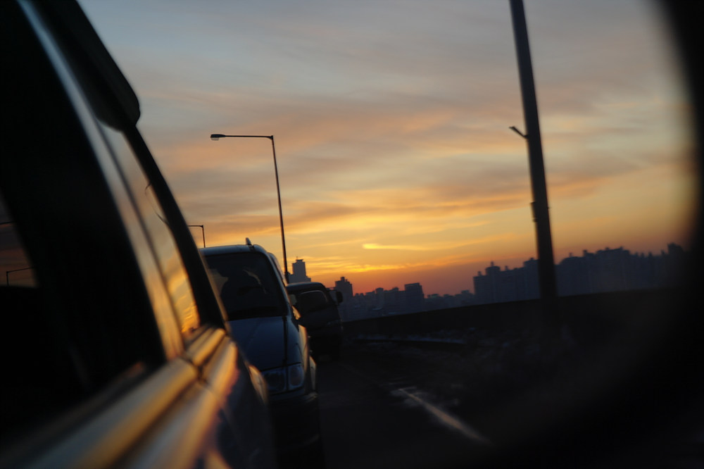 주말 차가 무진장 막히는 강변북로를 서행하면서 담아본 한강 일몰샷입니다.