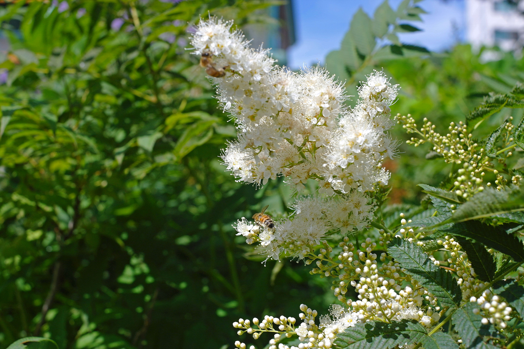 시민들 산책길에 심어져 있는 나무인데 언뜻 보면 하얀꽃이 솜뭉치 처럼 보여서 그닥 인데 카메라 렌즈를 통해서 보면 꽃 한송이 한송이가 모여서 예쁘게 모양을 이루고 있네요. 꿀벌들이 엄청 모여 들던데 이 나무의 이름이 궁금 하군요 ... ^^