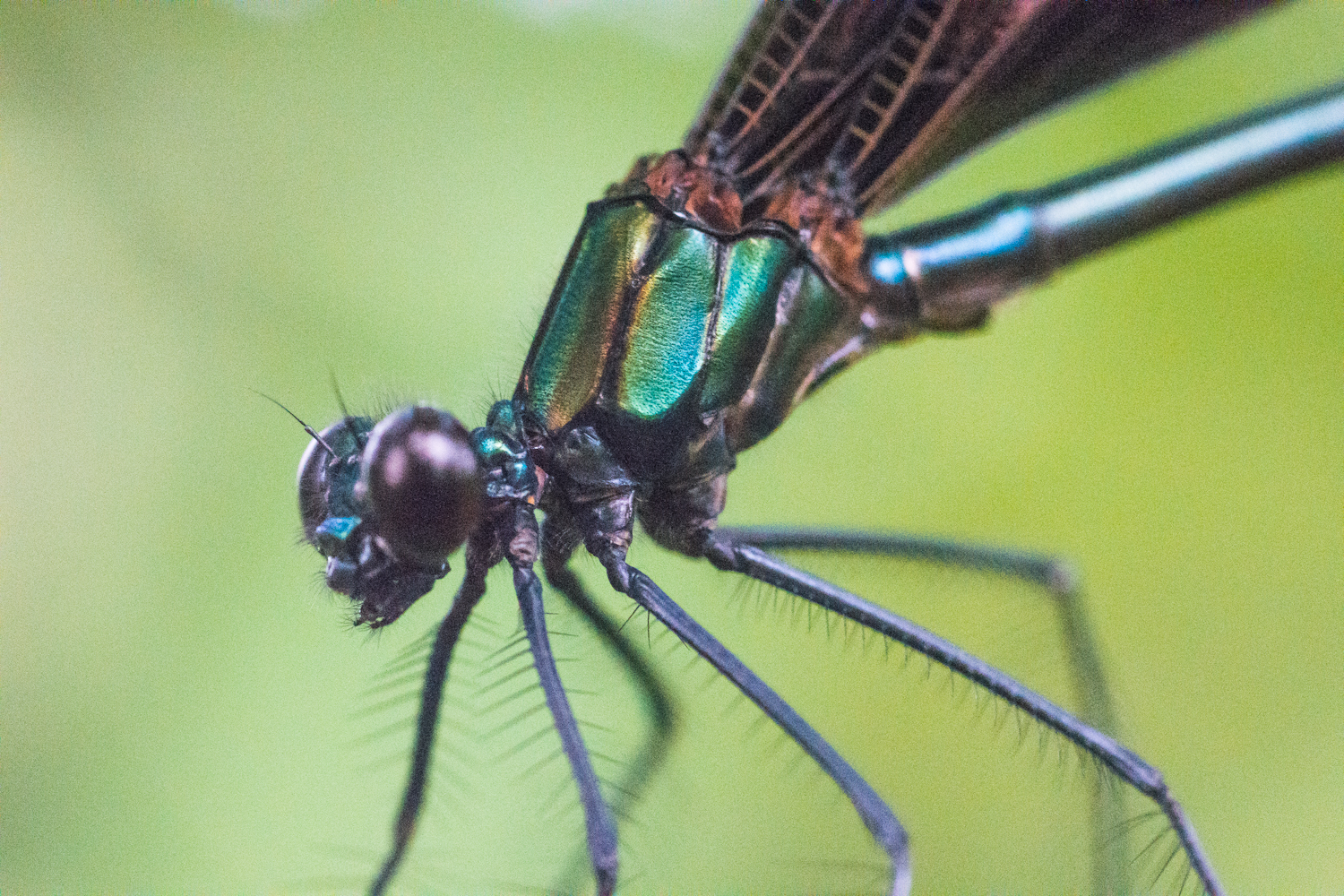 겹눈이 보일 정도로 정말 가까운 거리에서 물잠자리를 찍을 수 있었습니다. 찍어보니 물잠자리 머리 부분은 실잠자리와 거의 같군요.