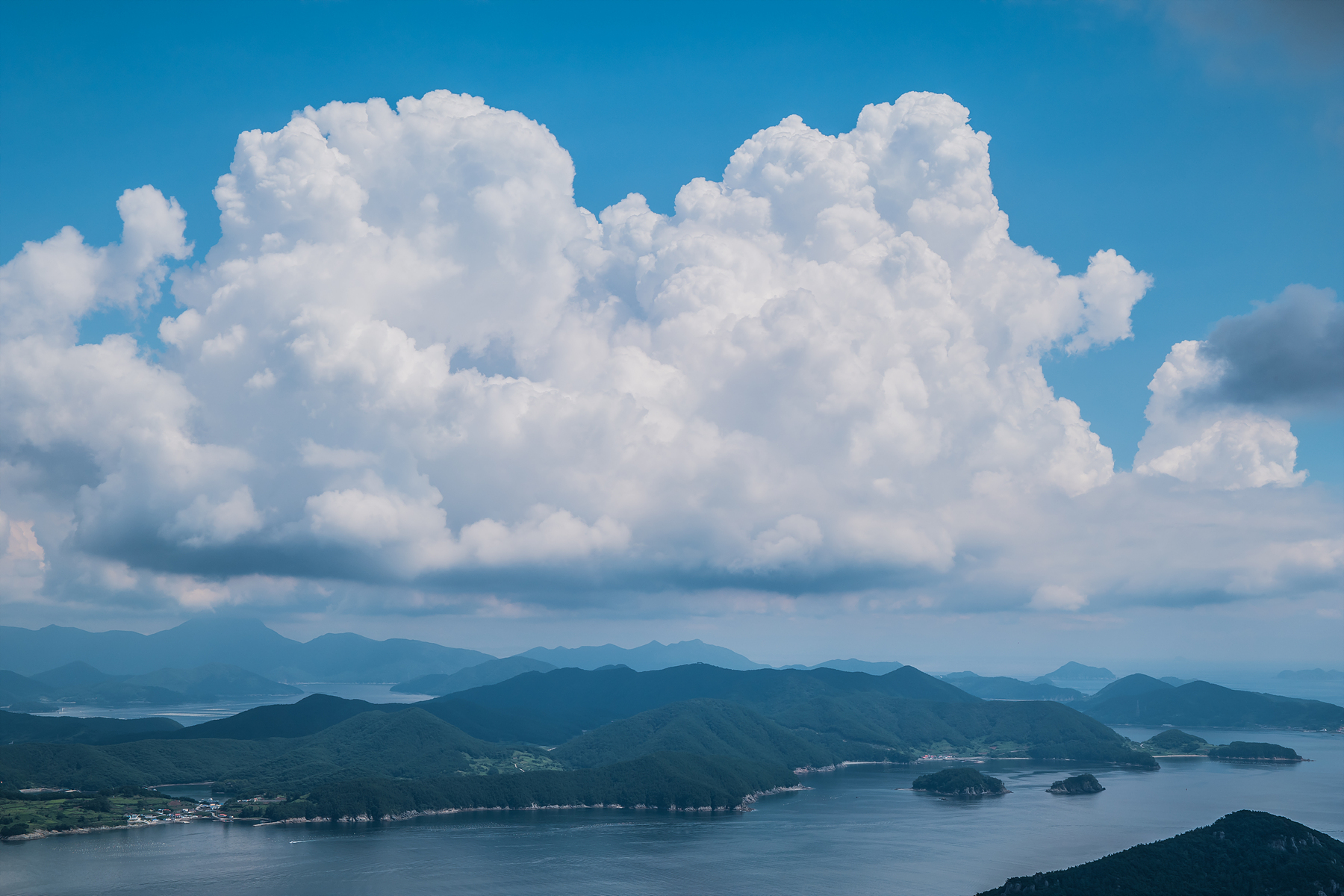 통영 미륵산에 케이블 카 타고 올라가서 찍었습니다.