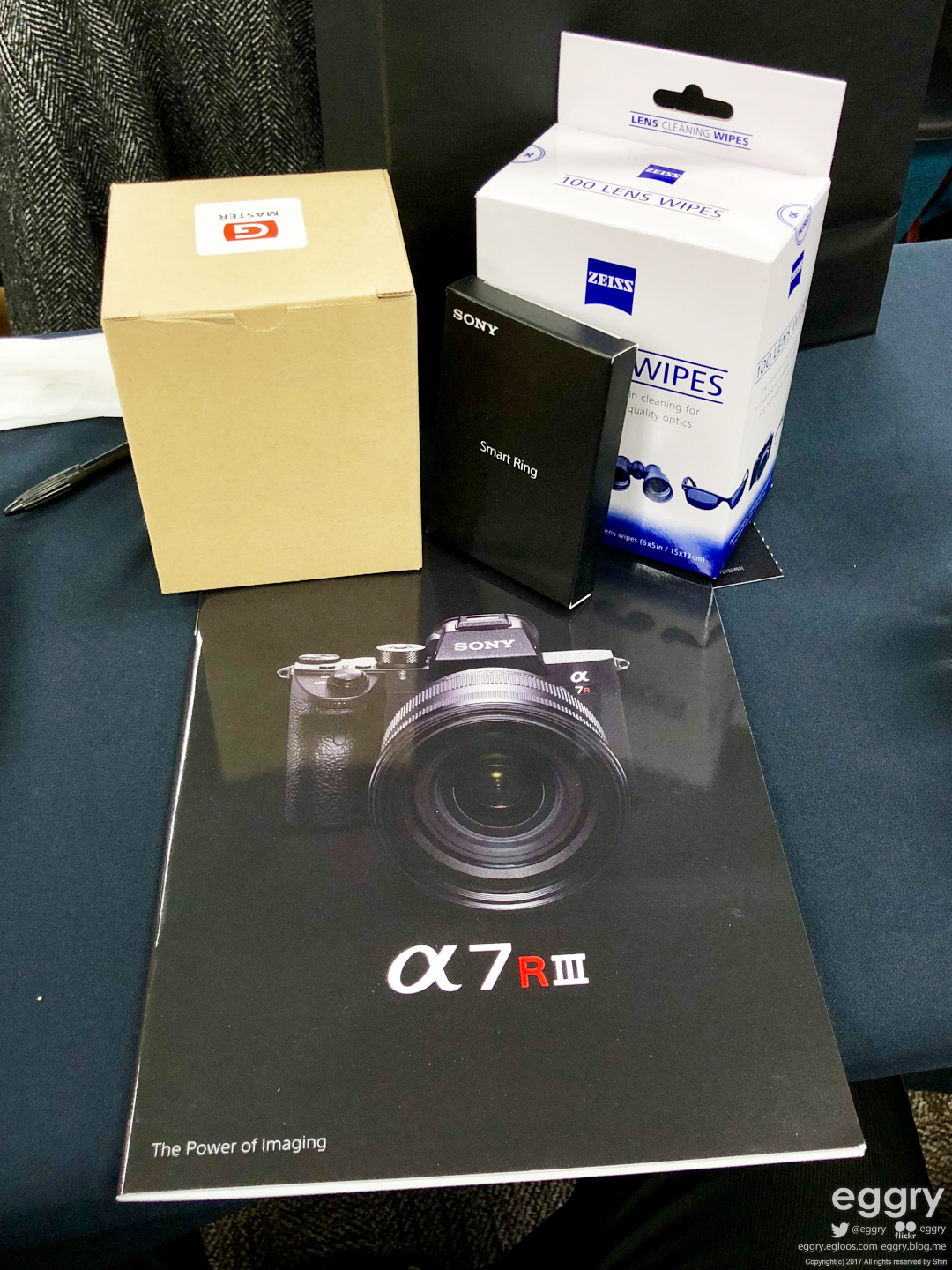 선물보따리(?). 평소엔 팜플렛 정도만 주더니 이번엔 자이스 렌즈 클리너와 G 마스터 머그컵, 그리고 스마트링도 줬네요.