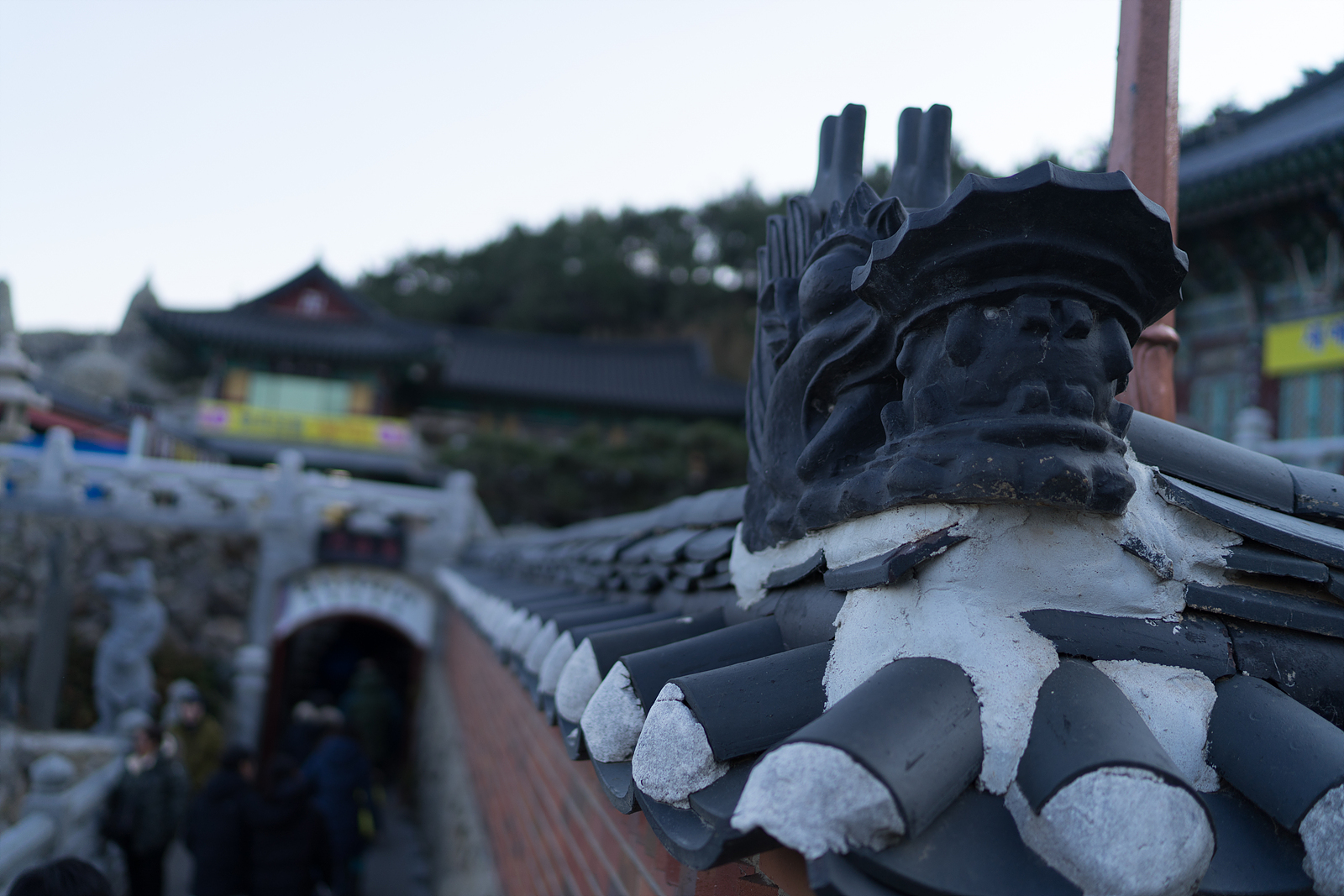 멋진 예술의 기와가 시선을 사로 잡습니다.