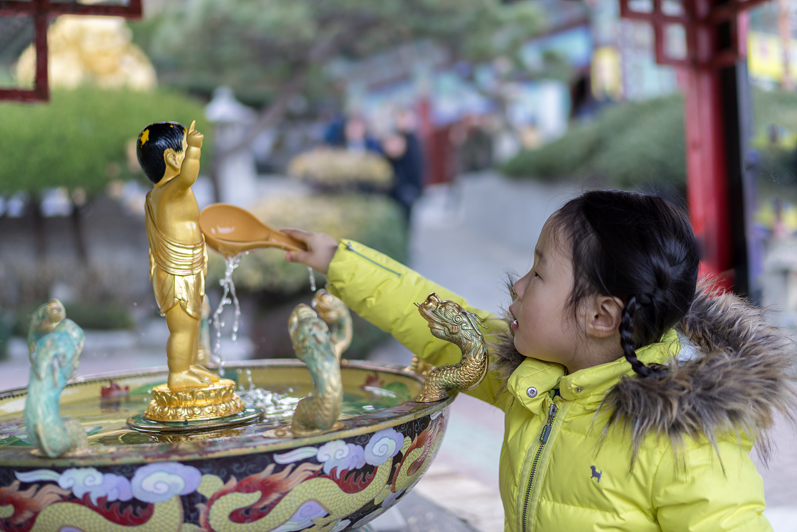 올라오니 우리 딸도 아빠의 결심을 이루게 해달라고 기도하는 듯 부처님을 씻겨(?)드리고 있습니다.