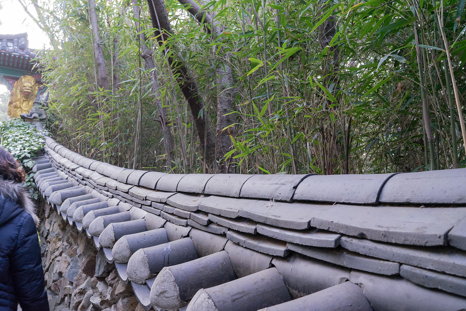 대나무 숲에 멋진 기와가 참으로 아름답네요.