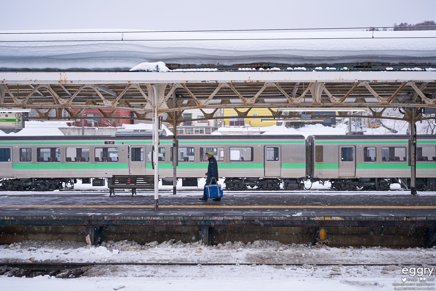 운하로 유명한 오타루 구경하러 삿포로에서 열차 타고 왔습니다. 선로에 눈이 당연하다는 듯 쌓여있고 플랫폼 지붕의 눈 두께란!