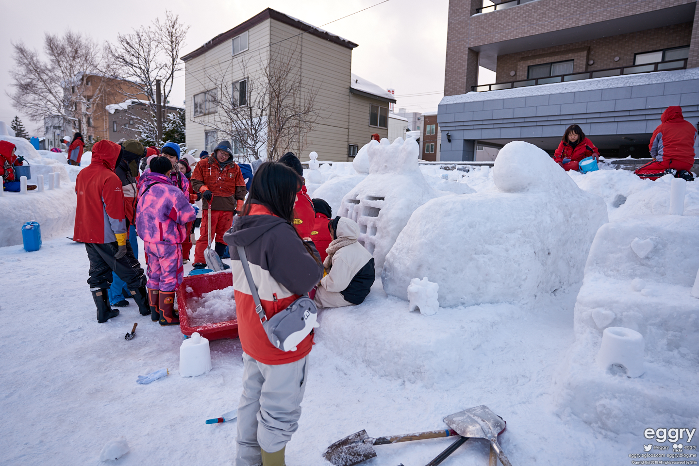 구 테미야 선 공원에서 눈 조형물 만드는 사람들. 한국 학생들이더군요. 친선교류인가 뭔가라고 합니다.