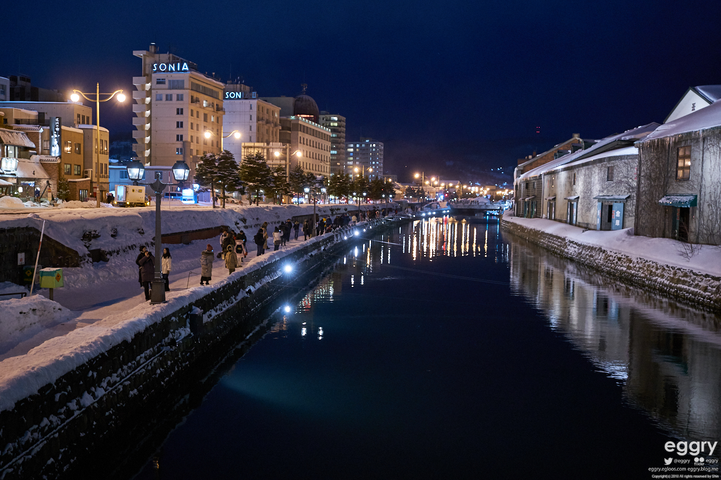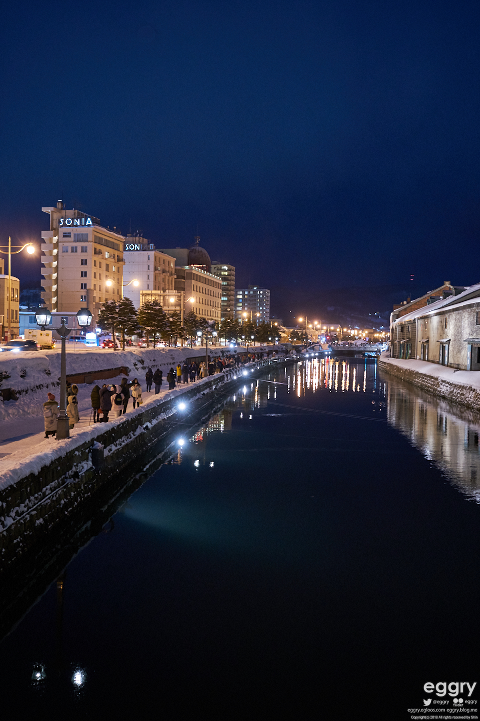 유명한 오타루 운하. 야경은 낮보다 훨씬 볼만합니다. 다음날 찍은 등불 라이트업 때는 훨씬 좋지만요. 사람이 적어서 찍기는 이날이 더 쉬웠네요.