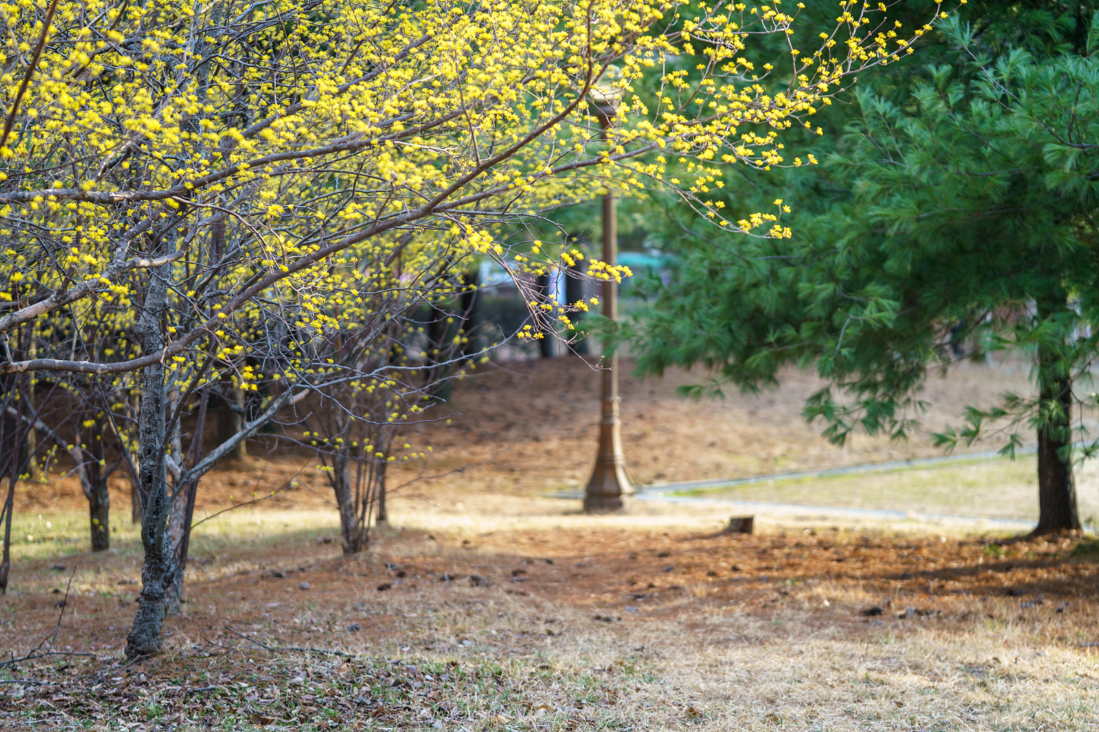 가까운 공원에 산수유가 피었다는 소식을 접하고 달려가봤습니다.