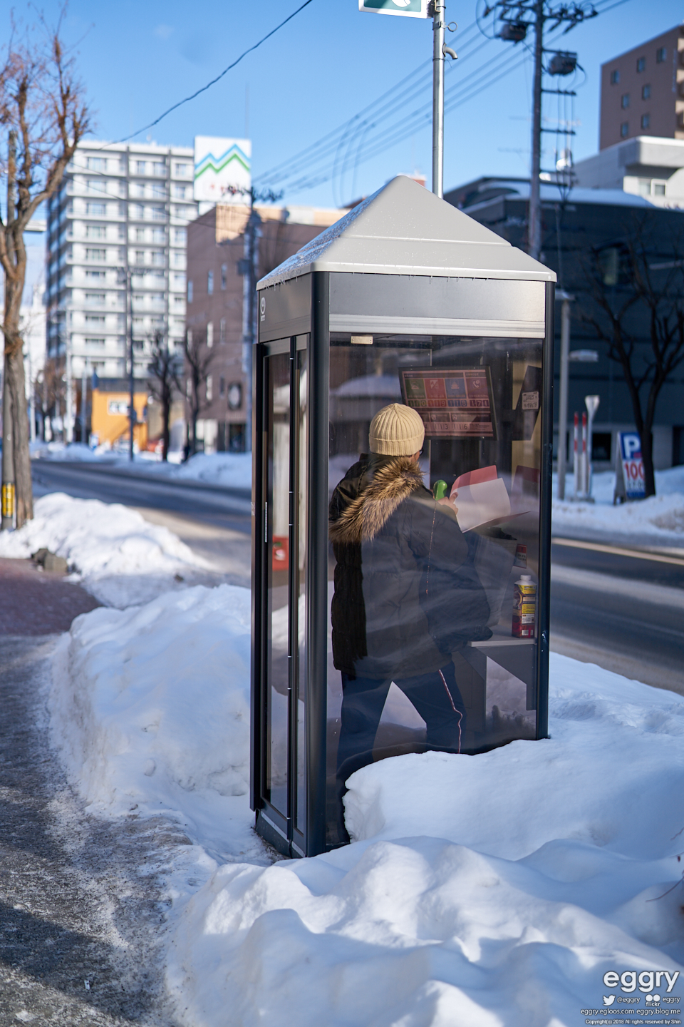 간신히 눈 치워놓은 공중전화 쓰는 사람. 일본은 아직 공중전화를 좀 쓰더군요.