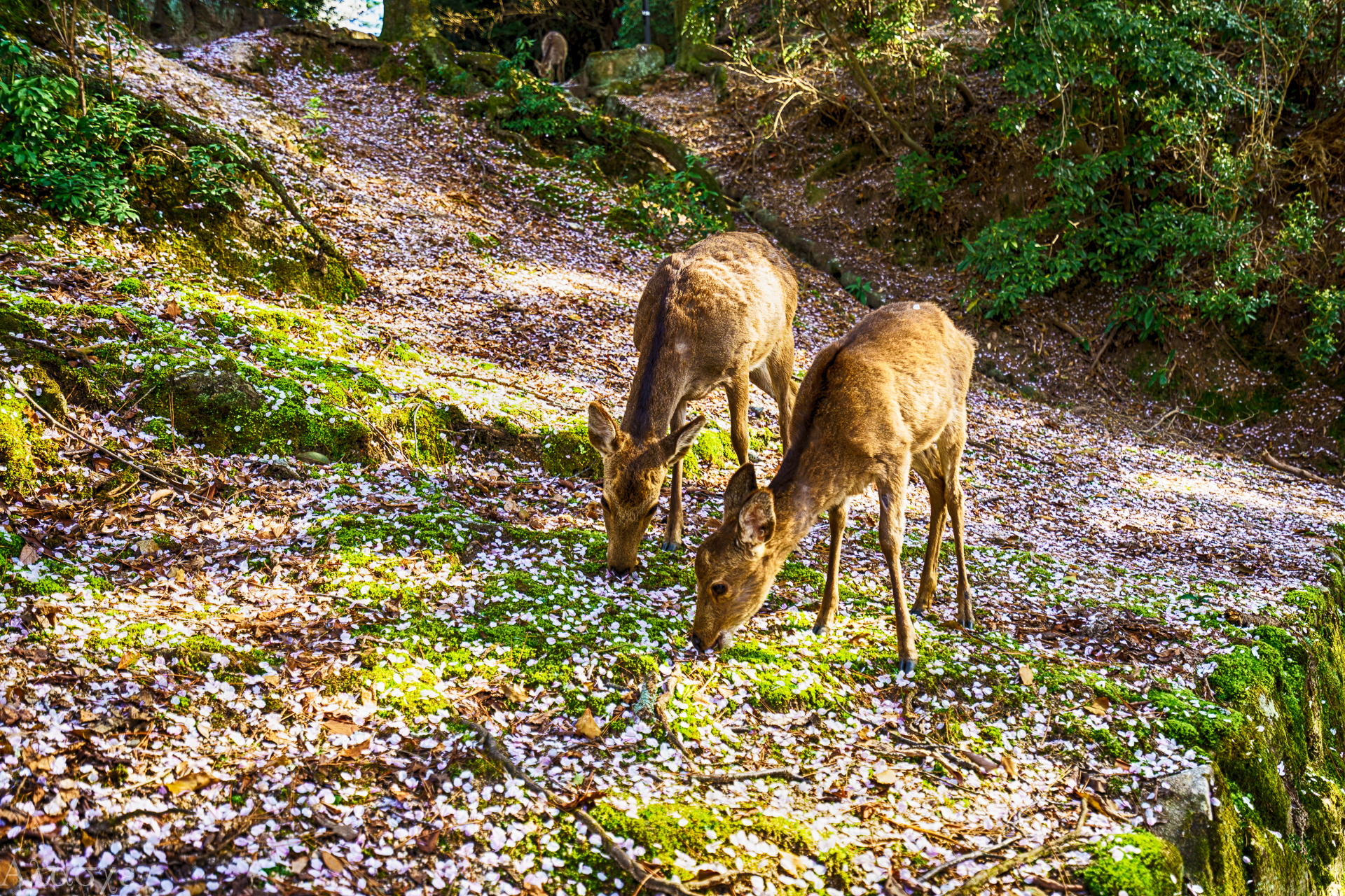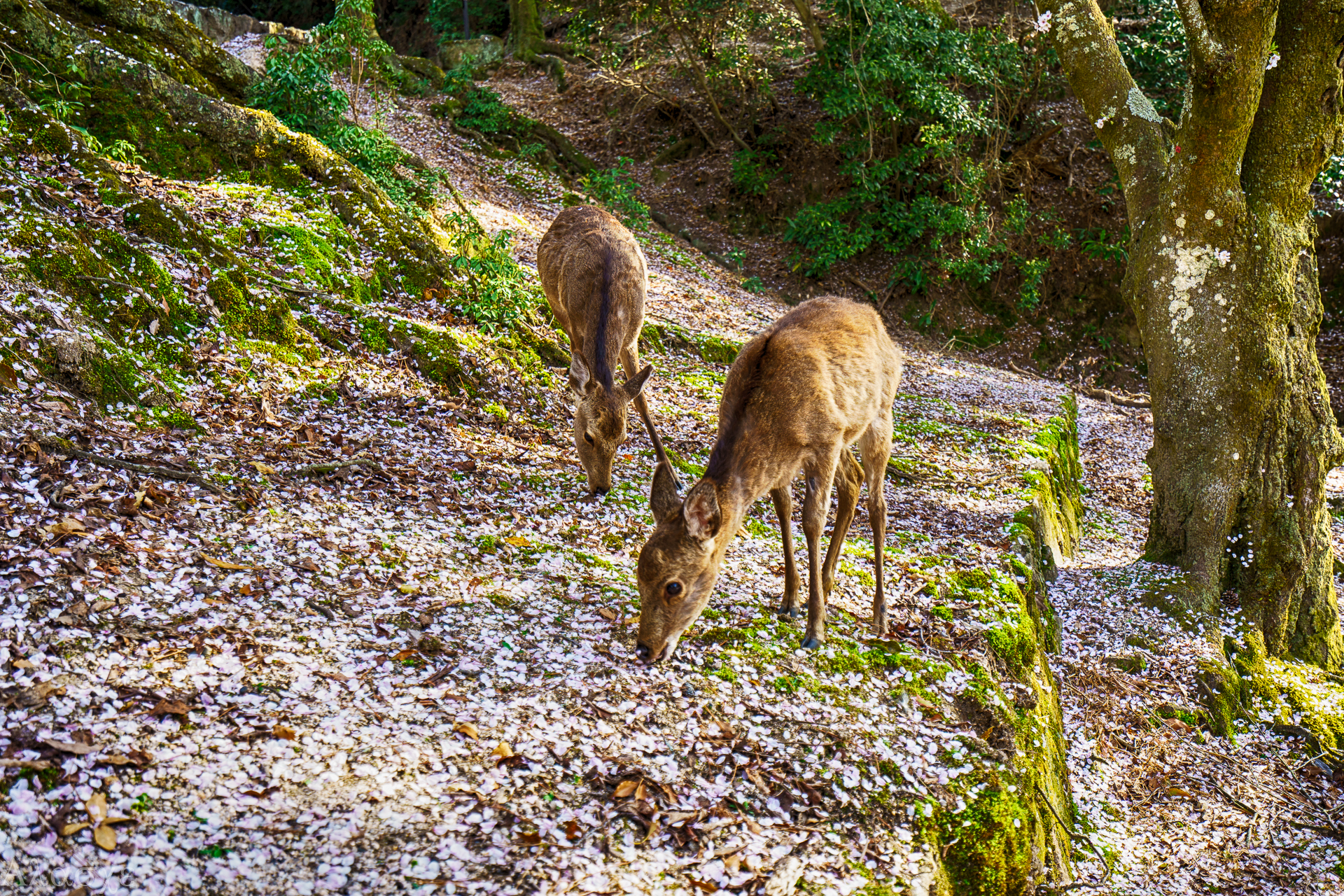 사슴이 벚꽃을 잘 먹네요..