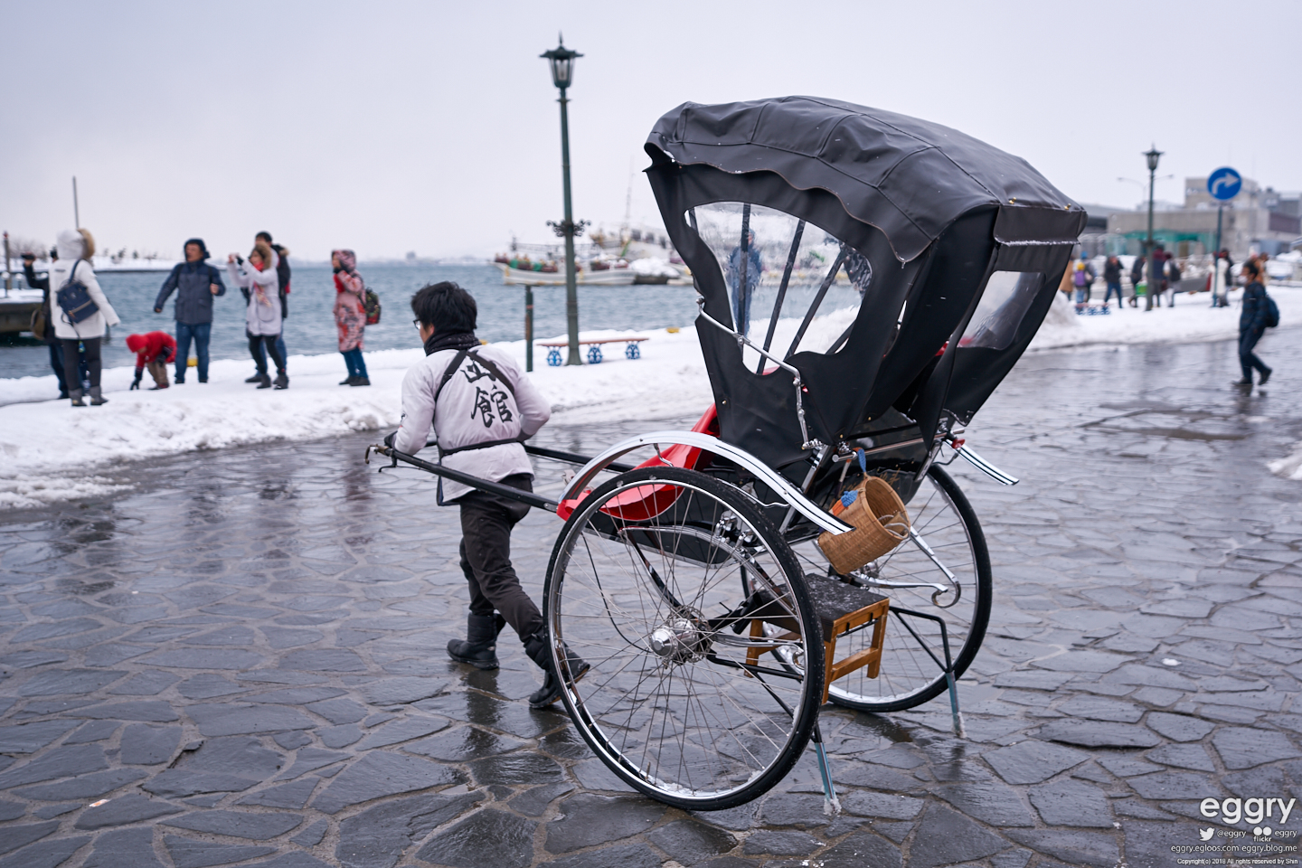 눈이 오락가락 하는데도 열일 중인 인력거꾼. 비오거나 눈올 때 보면 좀 대단합니다.