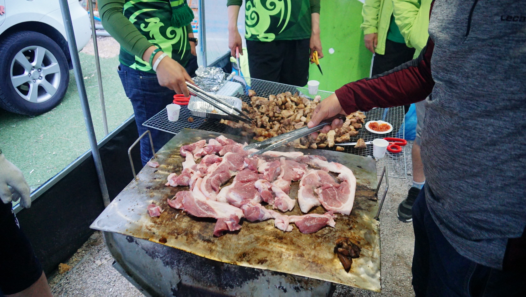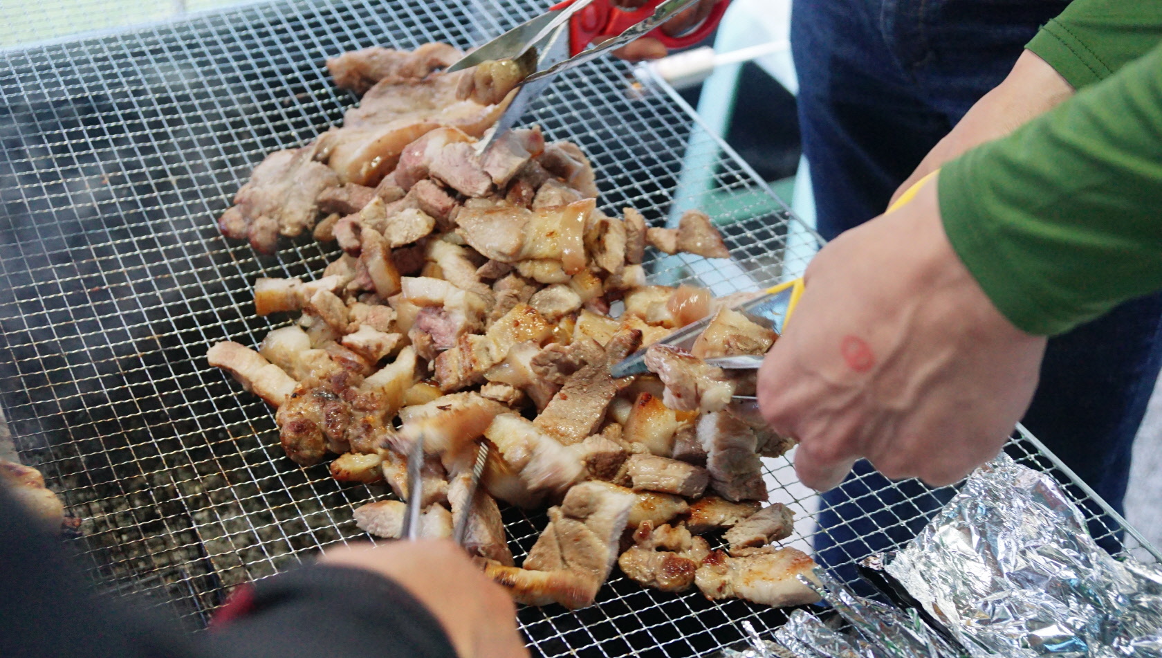 30여명이 먹었는데 저렇게 쌓아두고 구워야 양이 맞더라구요..ㅎㄷㄷ