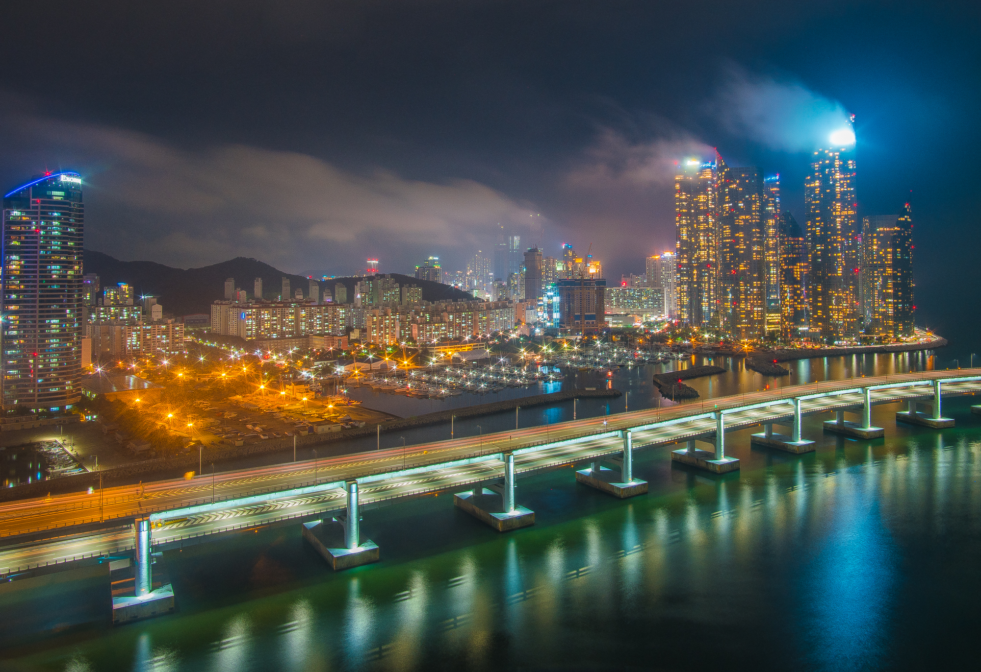 마린시티쪽 연기때매 불난줄 알고 옥상 올랐더니 비온후 안개네요 ㅎ 공장 굴뚝연기 같네요 ㅎ