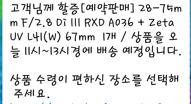 아파서 병원가는데 뭐 배달왔다고하네요 아 빨리 가서 열어보고싶은데 병원갔다와야해서 ㅠㅠ 저녁에 퇴근하면 샘플샷 좀 찍어봐야겠습니다 그나저나 할증된 렌즈를 샀군요