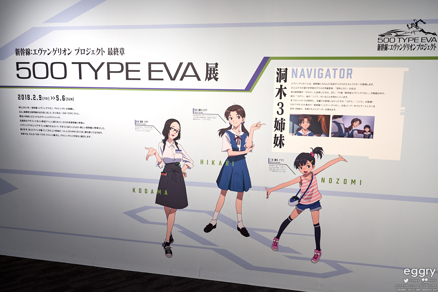 에바 신칸센 프로젝트의 소개에 나오는 호라키 세자매. 애니메이션엔 차녀인 히카리가 나왔는데 언니와 동생 이름인 코다마와 노조미도 전부 신칸센 등급 이름이라고.