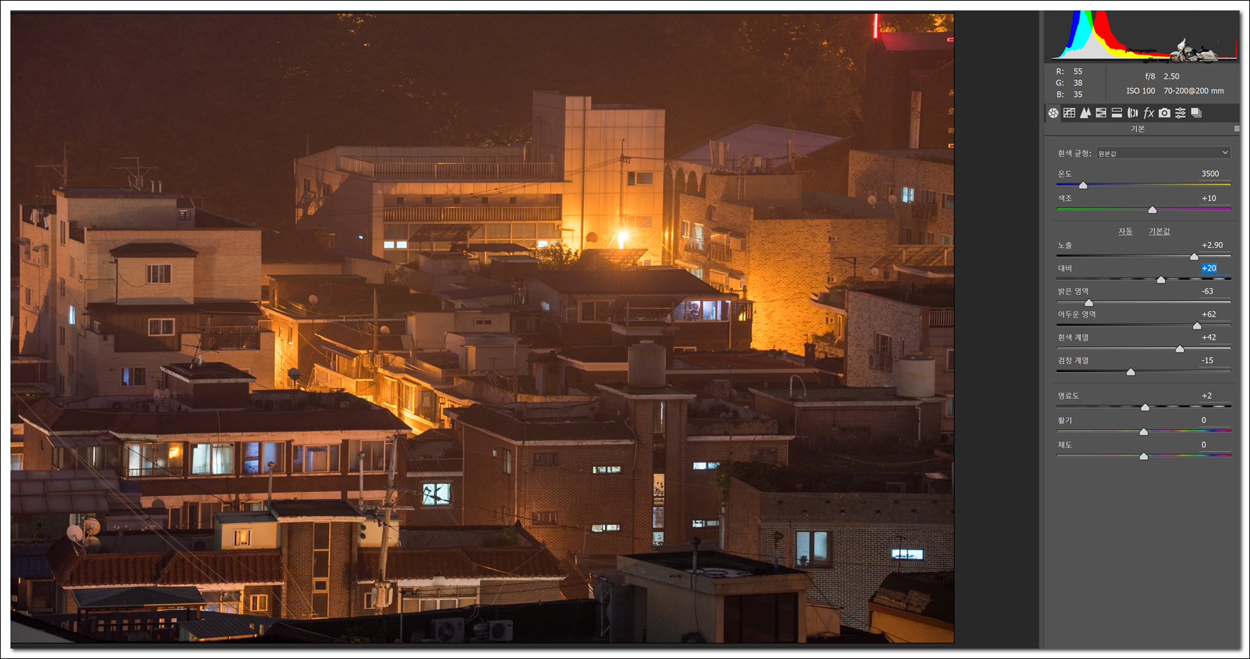 노이즈와 선예도 0에 놓고 노출만 보정한 사진을 다시 올립니다.)