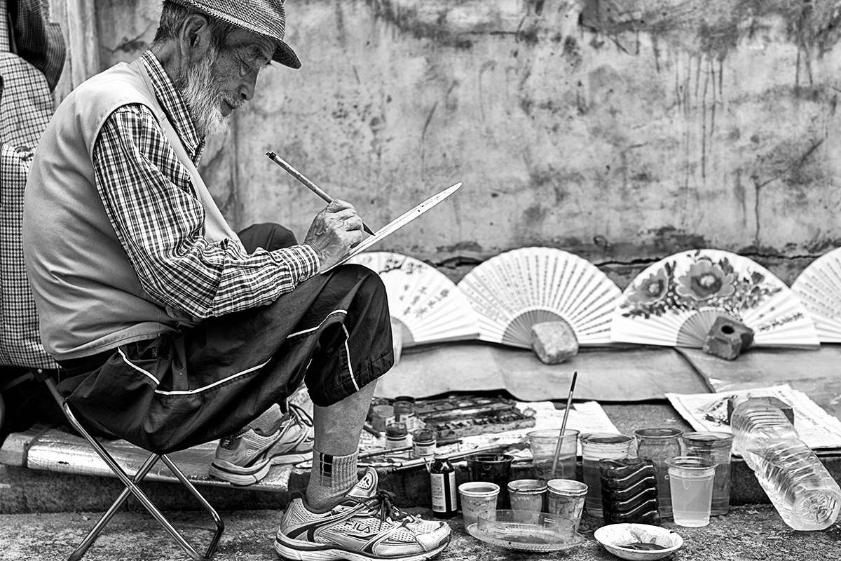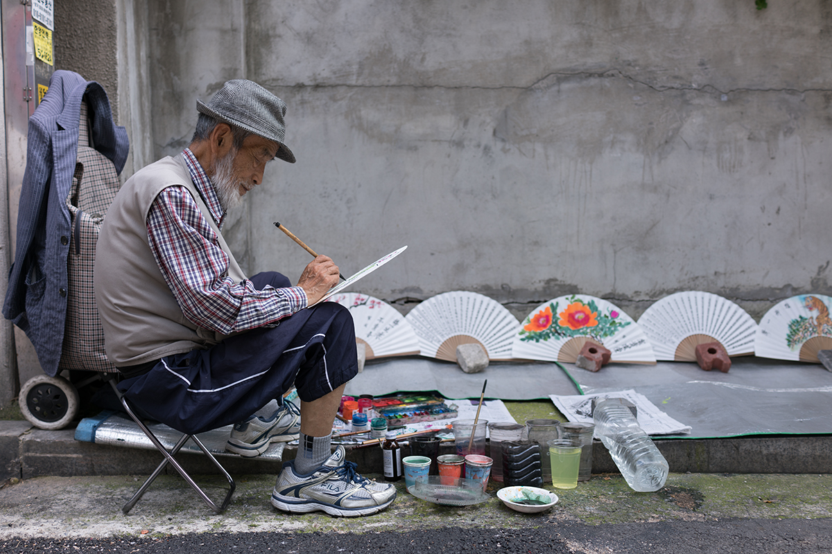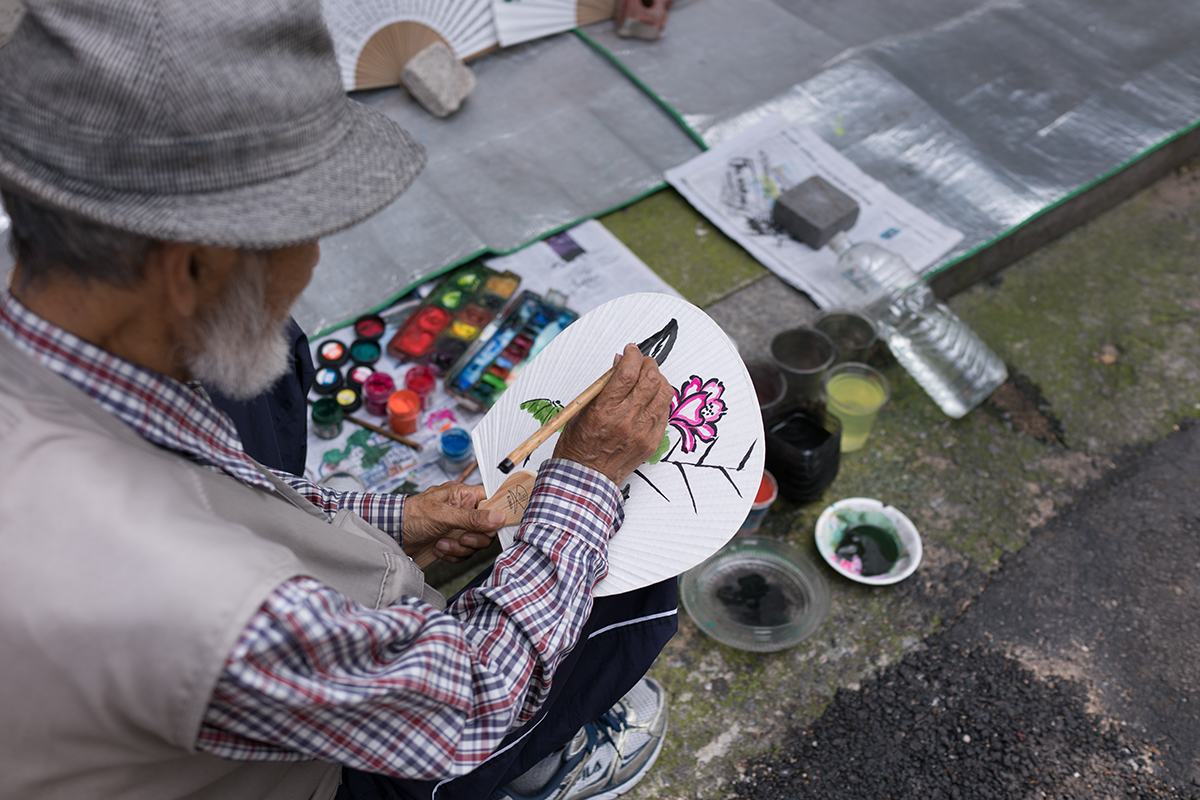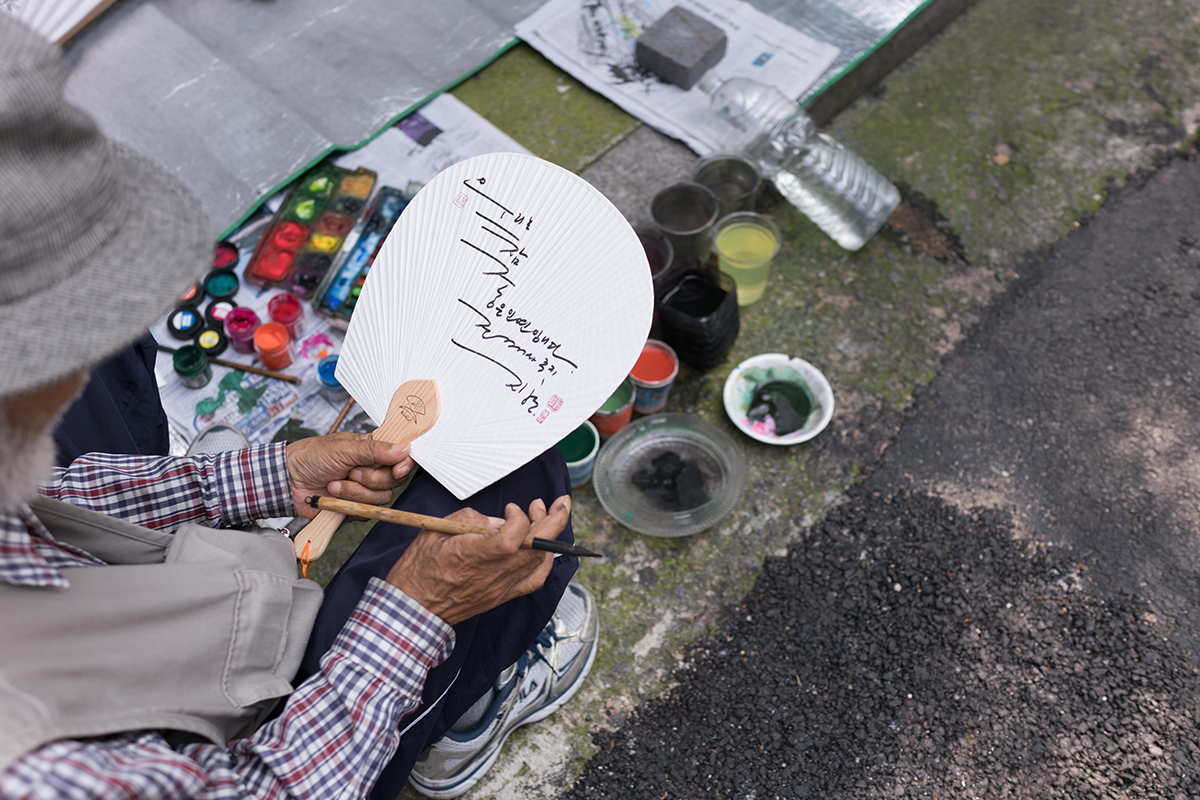 부채에 그림을 그려 넣으시던 그 할아버지께 다가갔습니다. 그리고, 정중하게