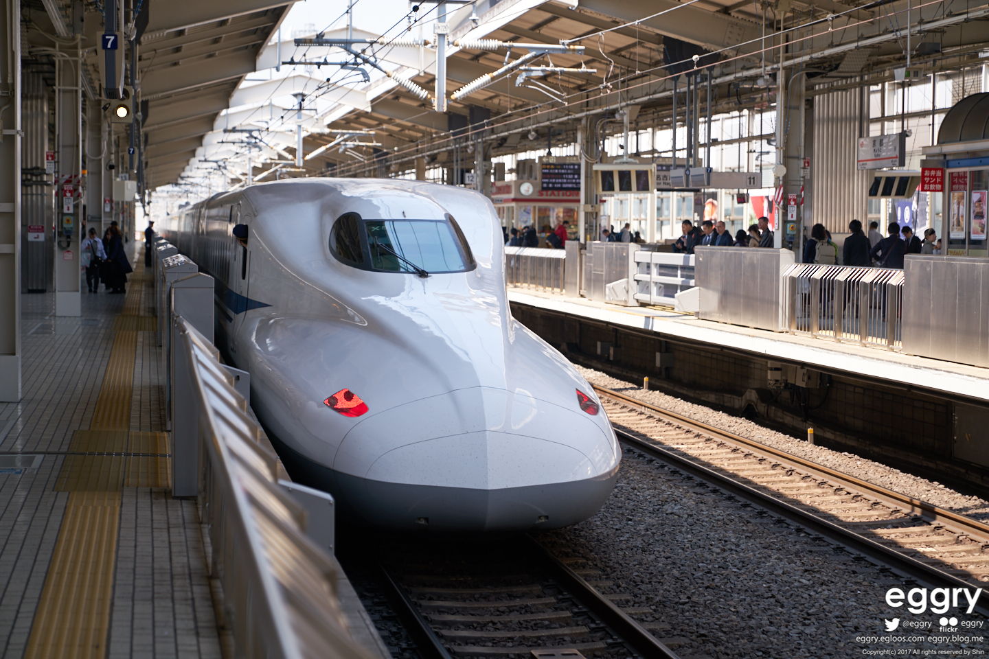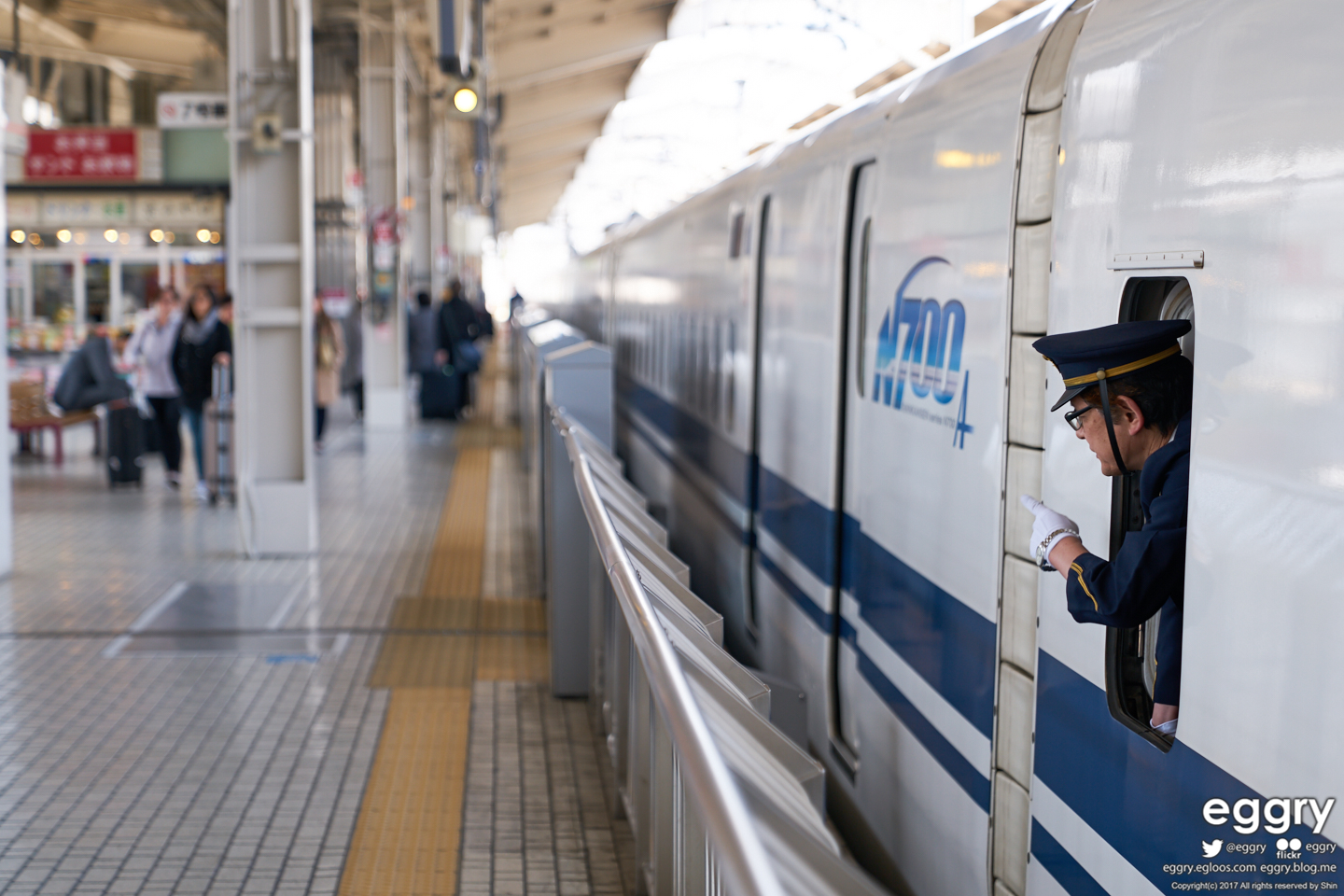 N700A계 신칸센과 역무원, 기관사. 나고야 역 촬영.
