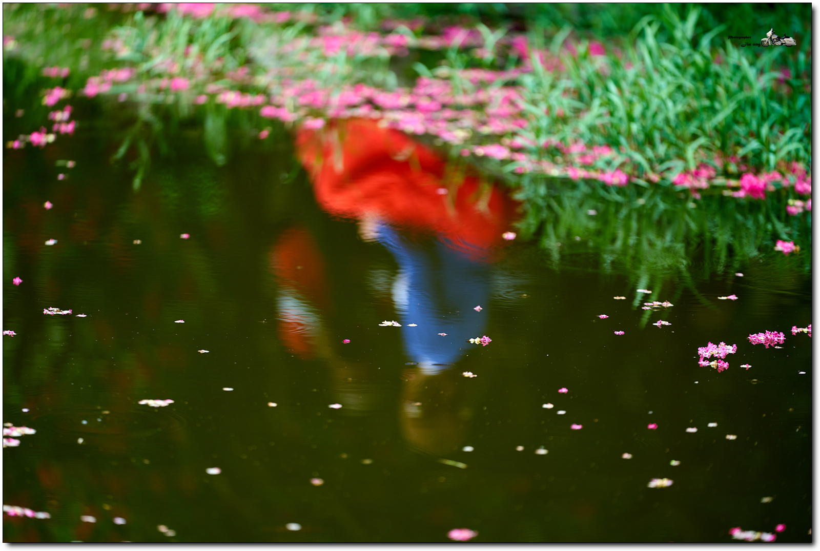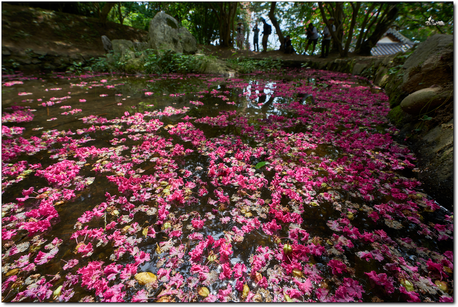떨어진 배롱꽃과 소금쟁이.