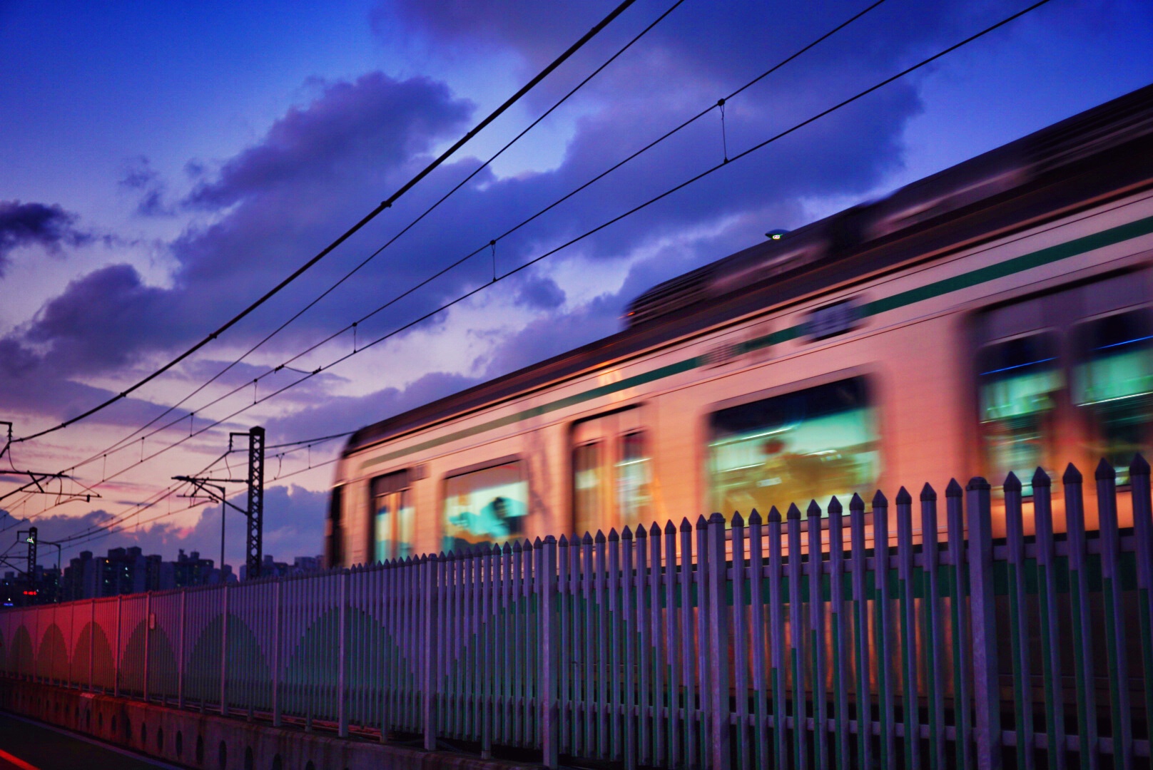 노을이 아쉬워서 퇴근중이던 지하철을 담았습니다