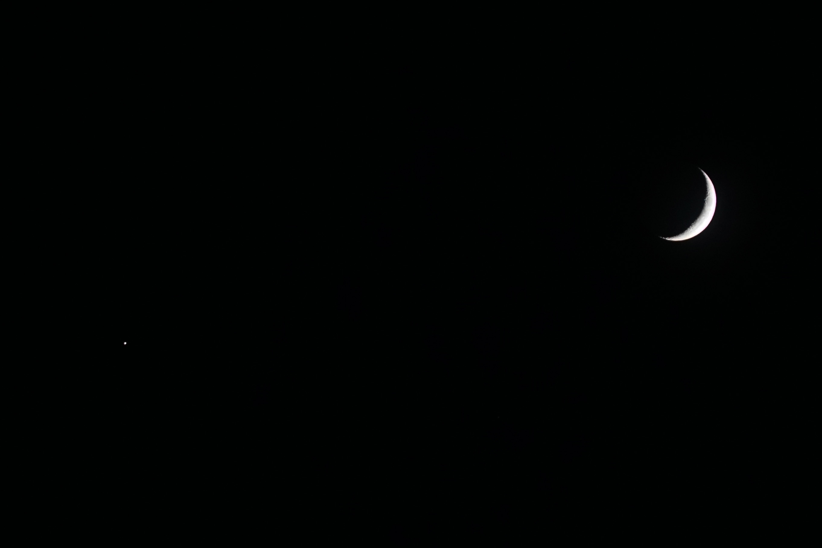 초승달 옆에 있는게 금성인가 싶네요.... 인공위성 같기도 하고...