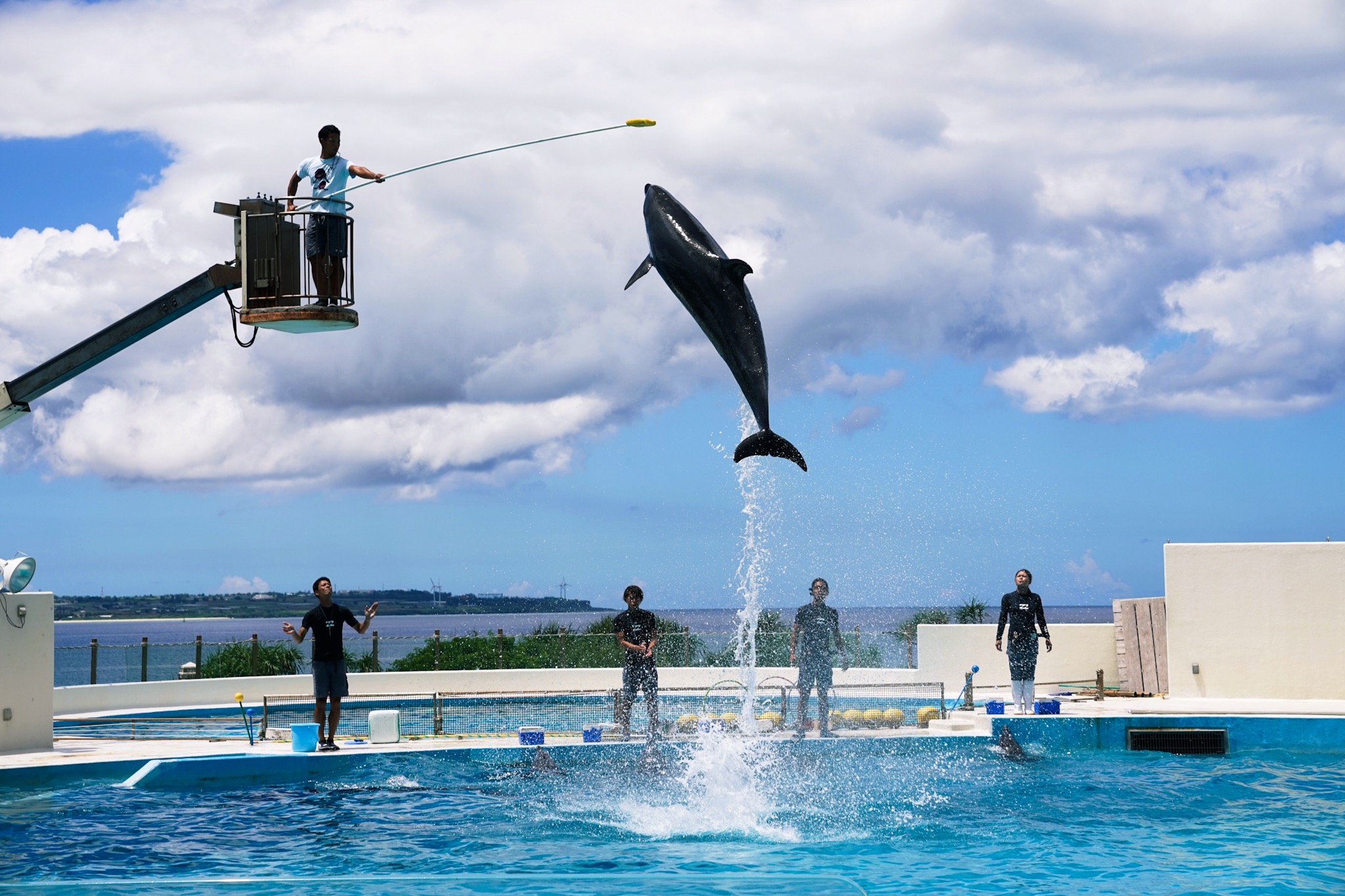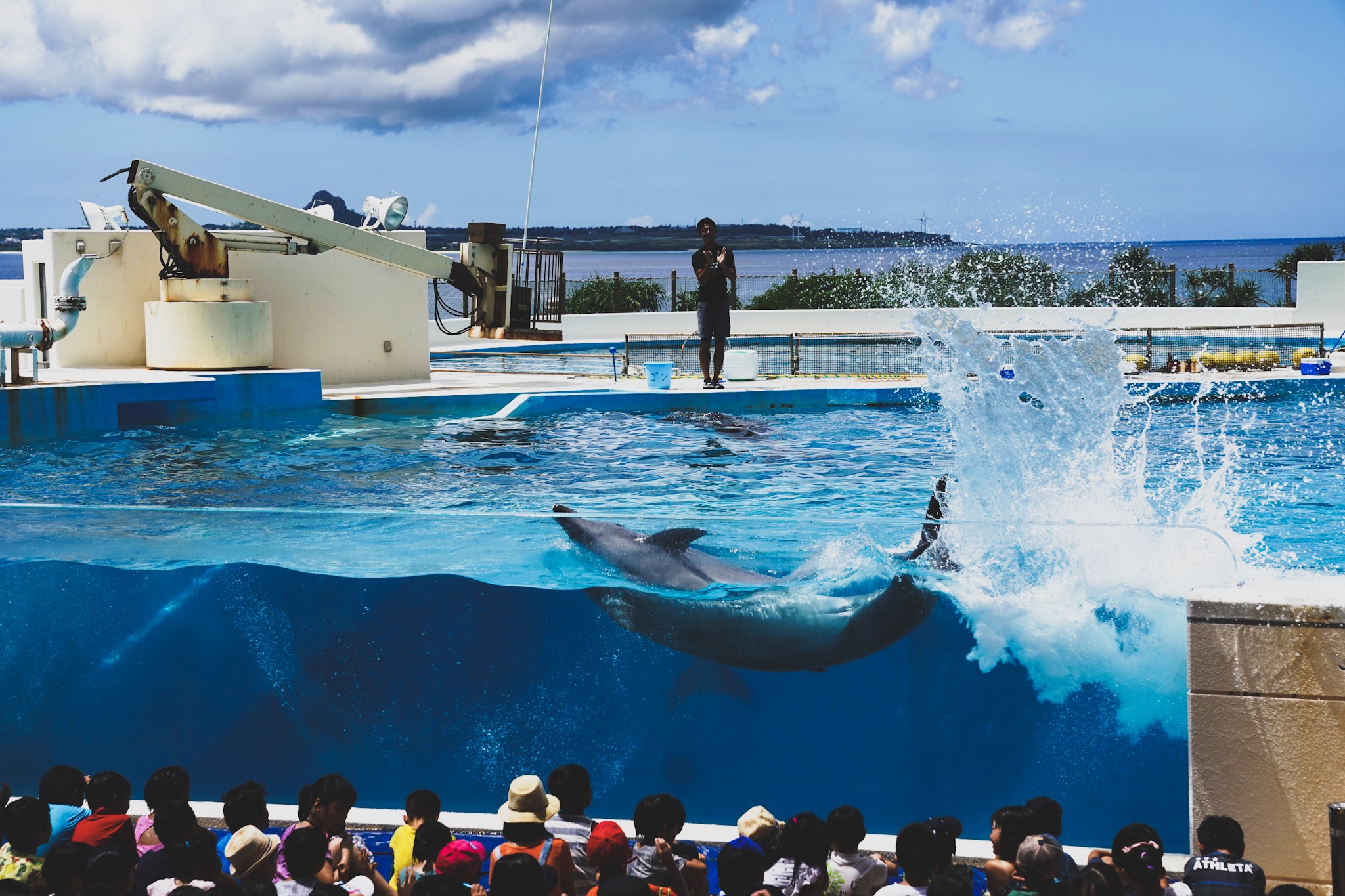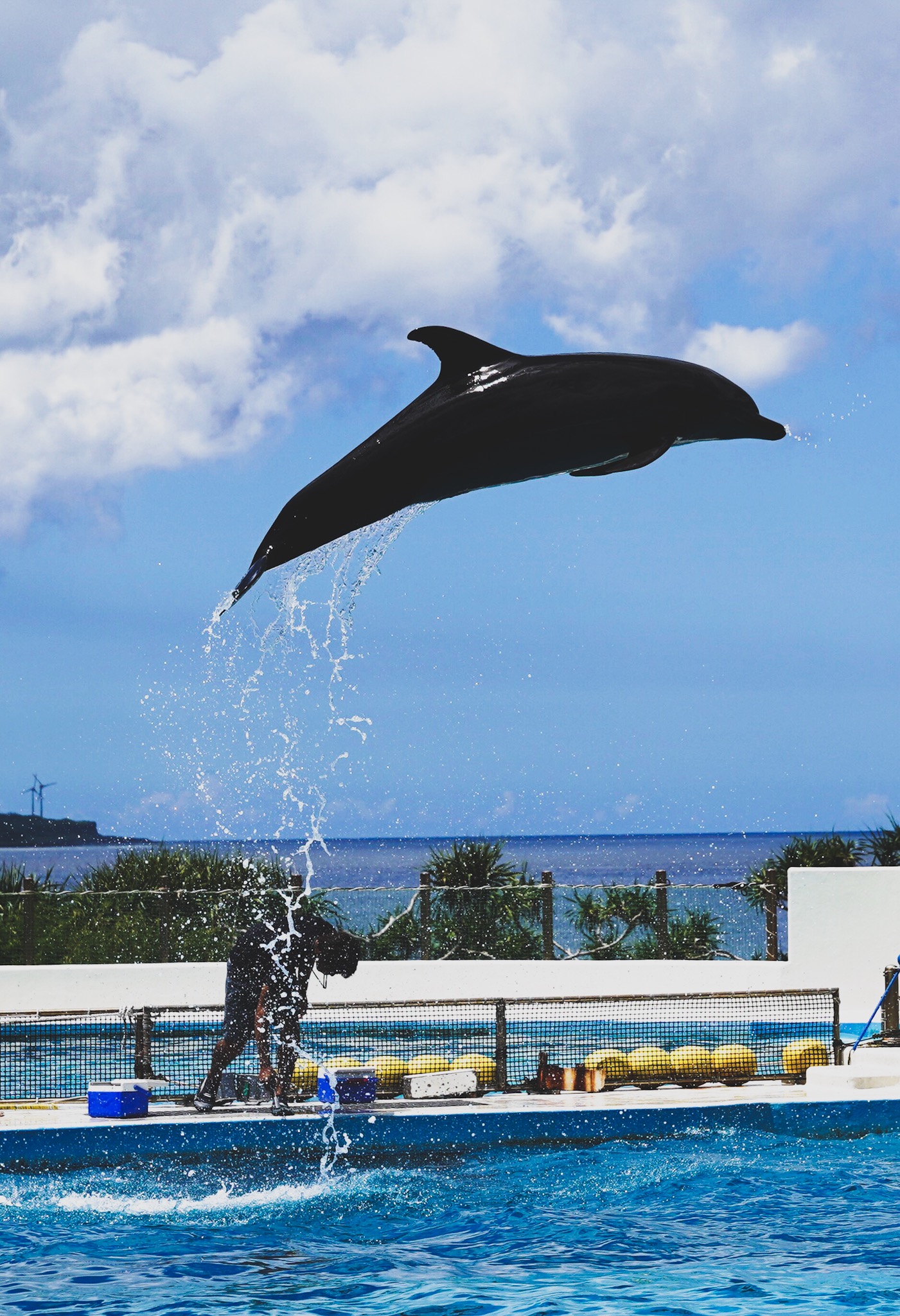 오키나와 츄라우미 수족관 야외 돌고래쇼입니다