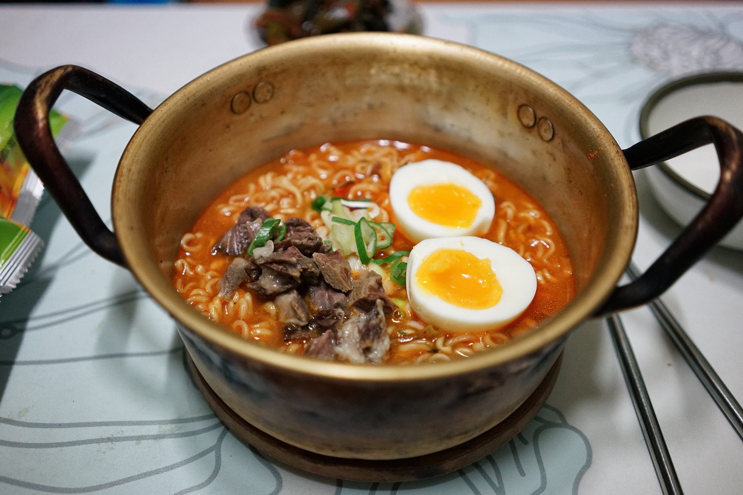 라면이 엄청 땡겼는데 집에 꼬리곰탕이 있어서 꼬리곰탕으로 라면 끓였습니다. ㅋㅋ
