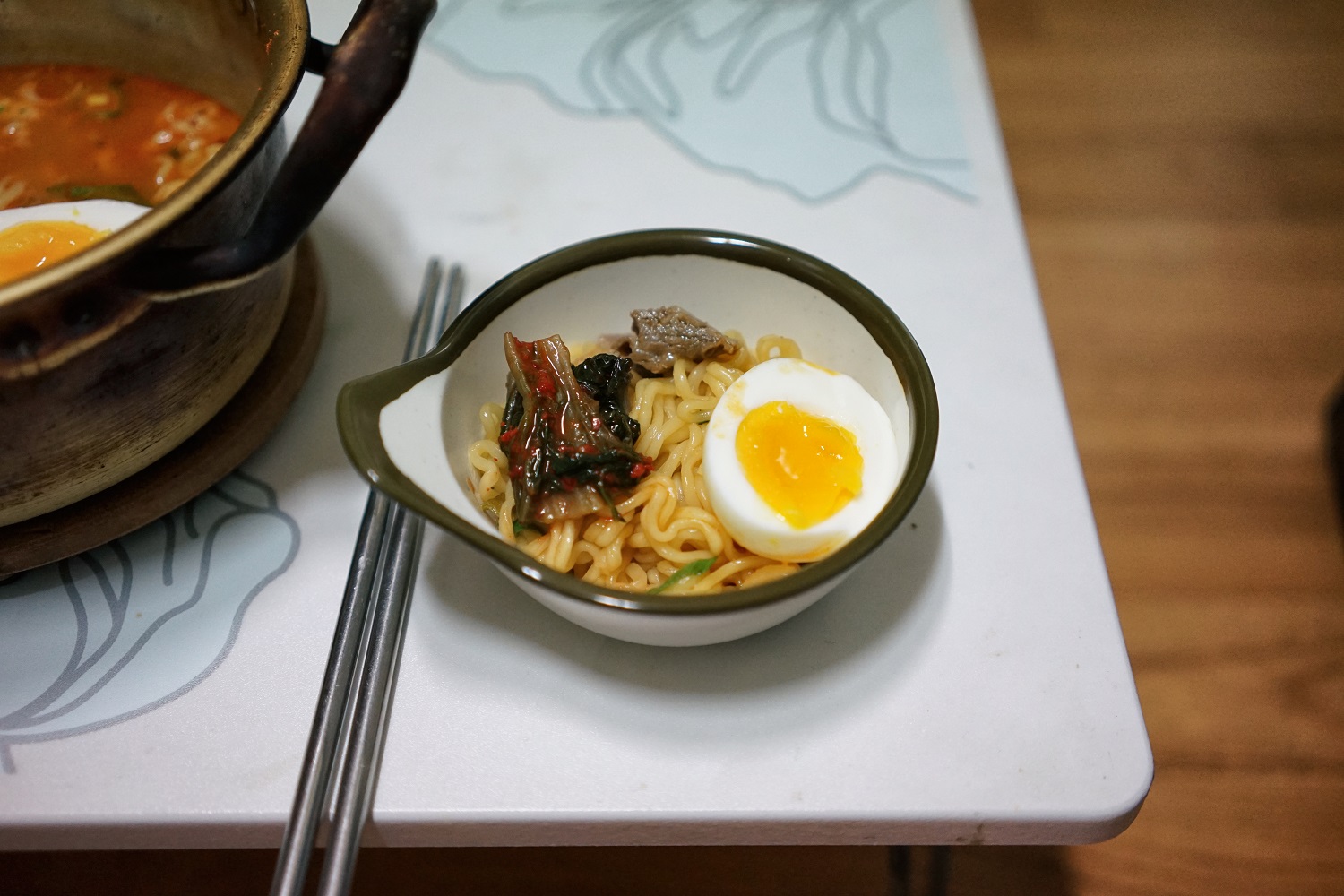 이왕 곰탕 국물로 끓이는거 제대로 끓이자 싶어서 반숙도 올려주고 꼬리 고기도 올렸어요.