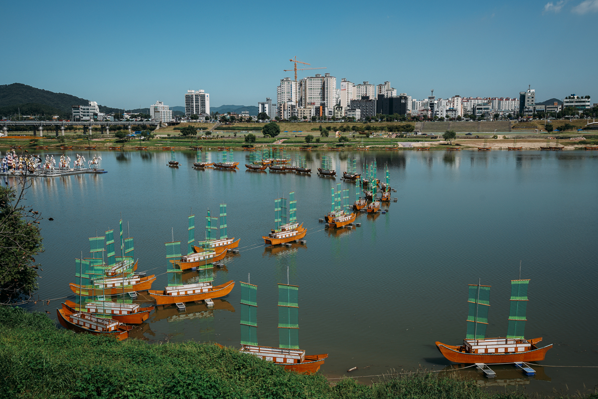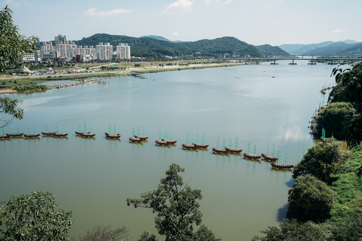 강건너 신관동도 보이고 백제문화제 준비로 한창이라 배들도 떠있네요.