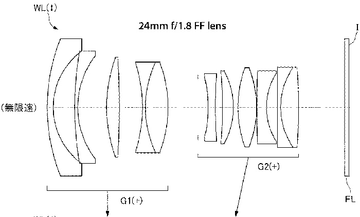 아래의 니콘의특허는 새로운 24mm f/1.8렌즈의특허이며 2 개의버전이다. 1 개는 풀프미러리스용이며 1 개는 크롭미러리스용이다.