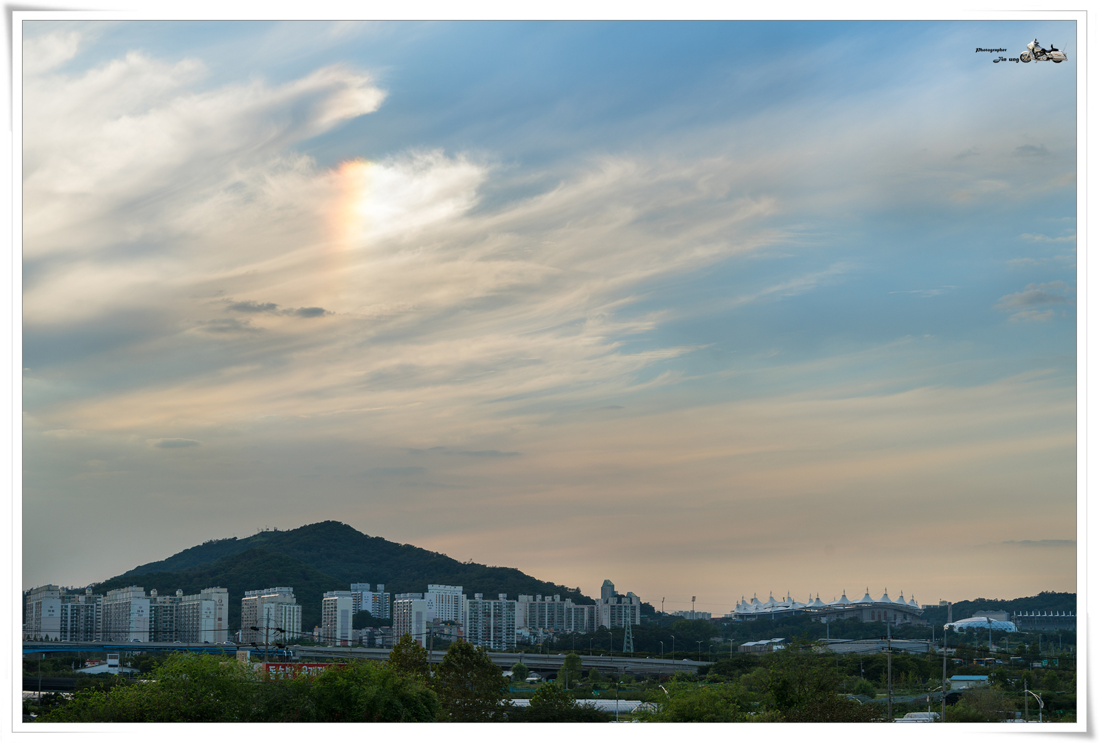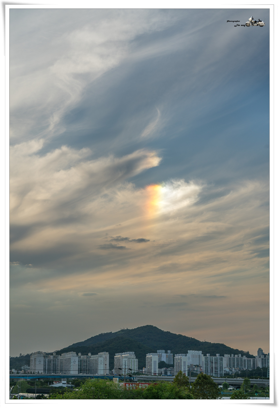 그 후 육교 인근에 세우가 올라가 무지개가 약간 생기는 장면을 담았습니다.