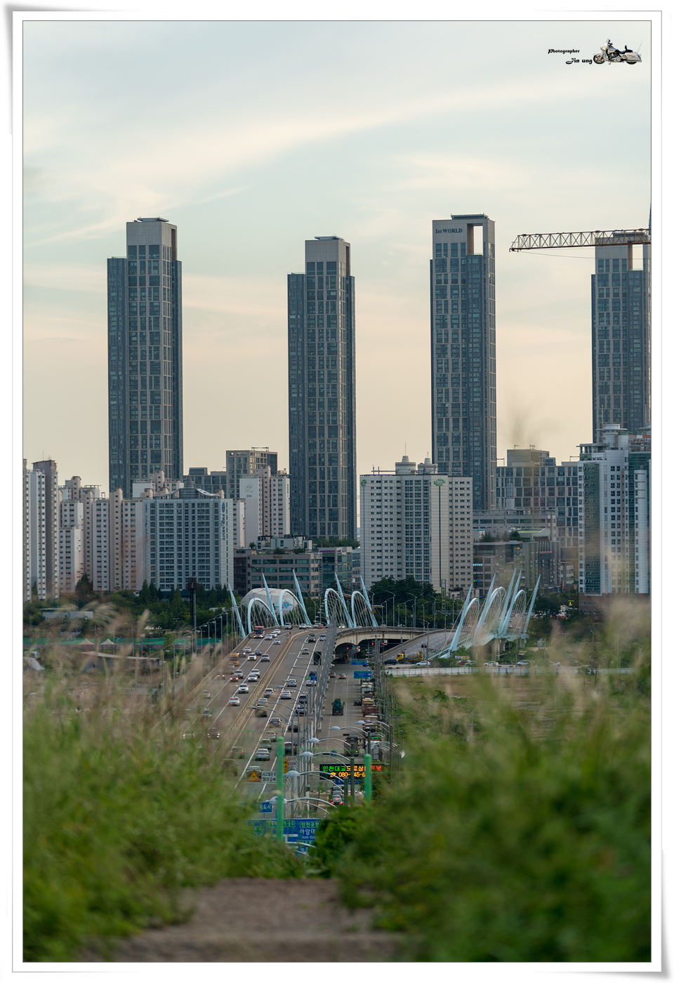 송도와 인천대교가 바라 보이는 바로 앞에 대단위 아파트 공사가 진행중입니다.