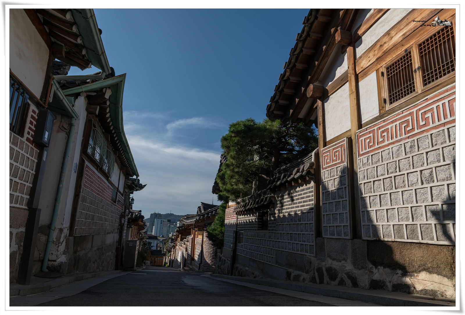 북촌 한옥마을 유명한 골목..한쪽은 공사중이고 다른 골목도 이른 아침이라 거주하는 분들의 자가용이 서 있어서
