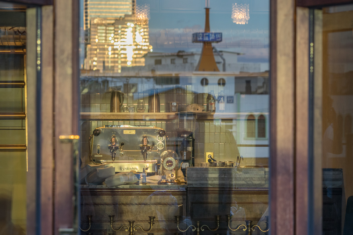 일몰의 반사광이 카페 실내를 비추고 있네요.