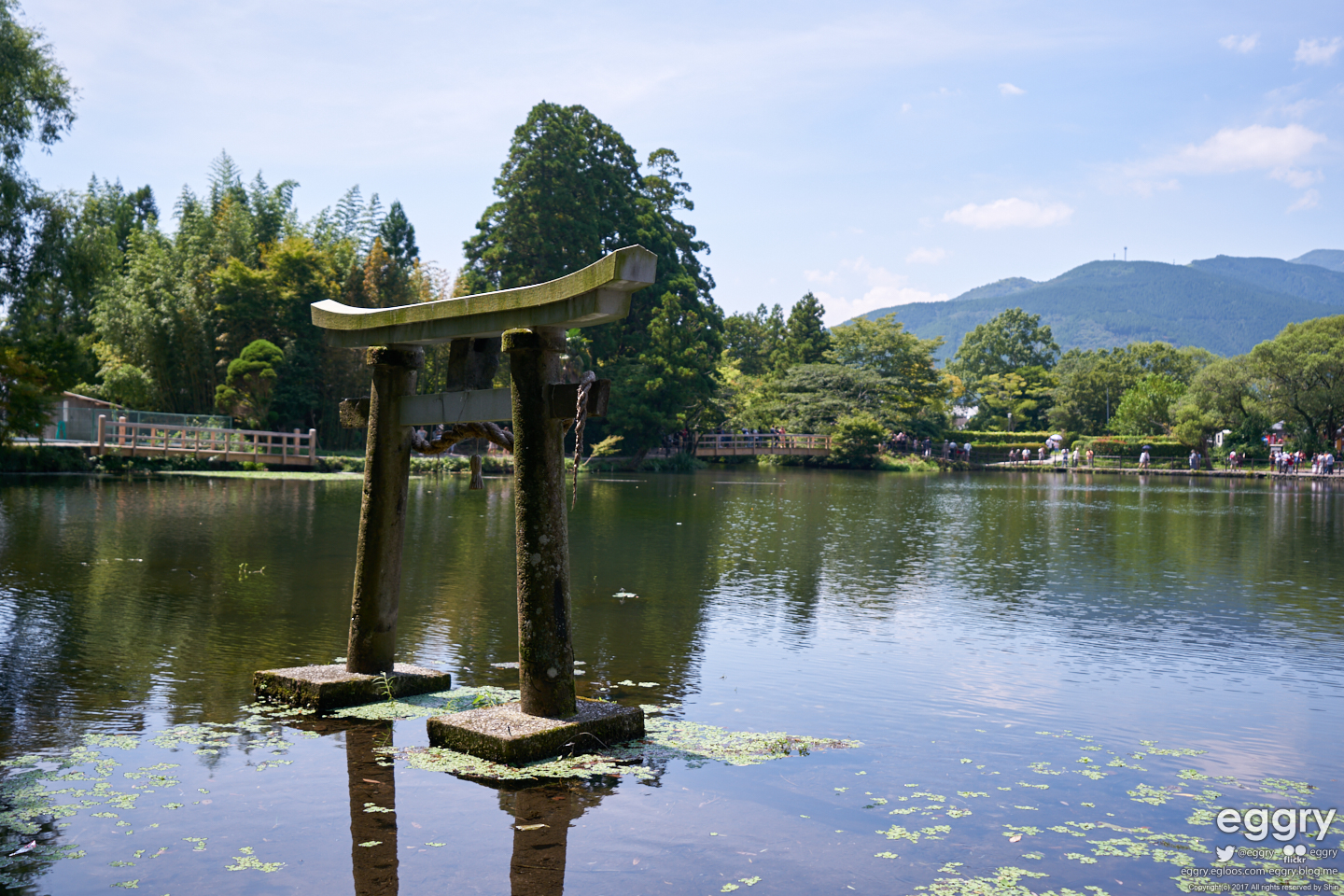 긴린코 호수 한켠에 있는 텐소 신사.