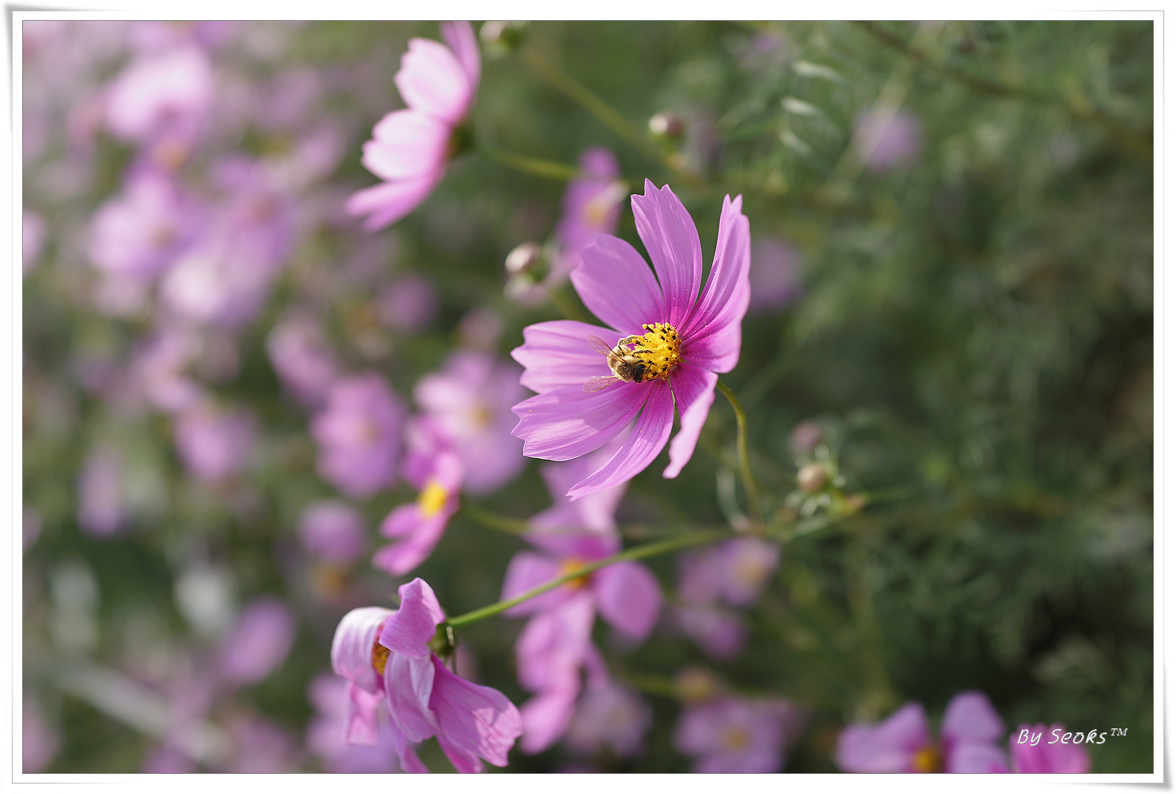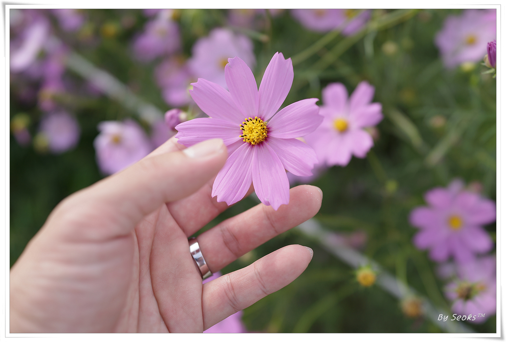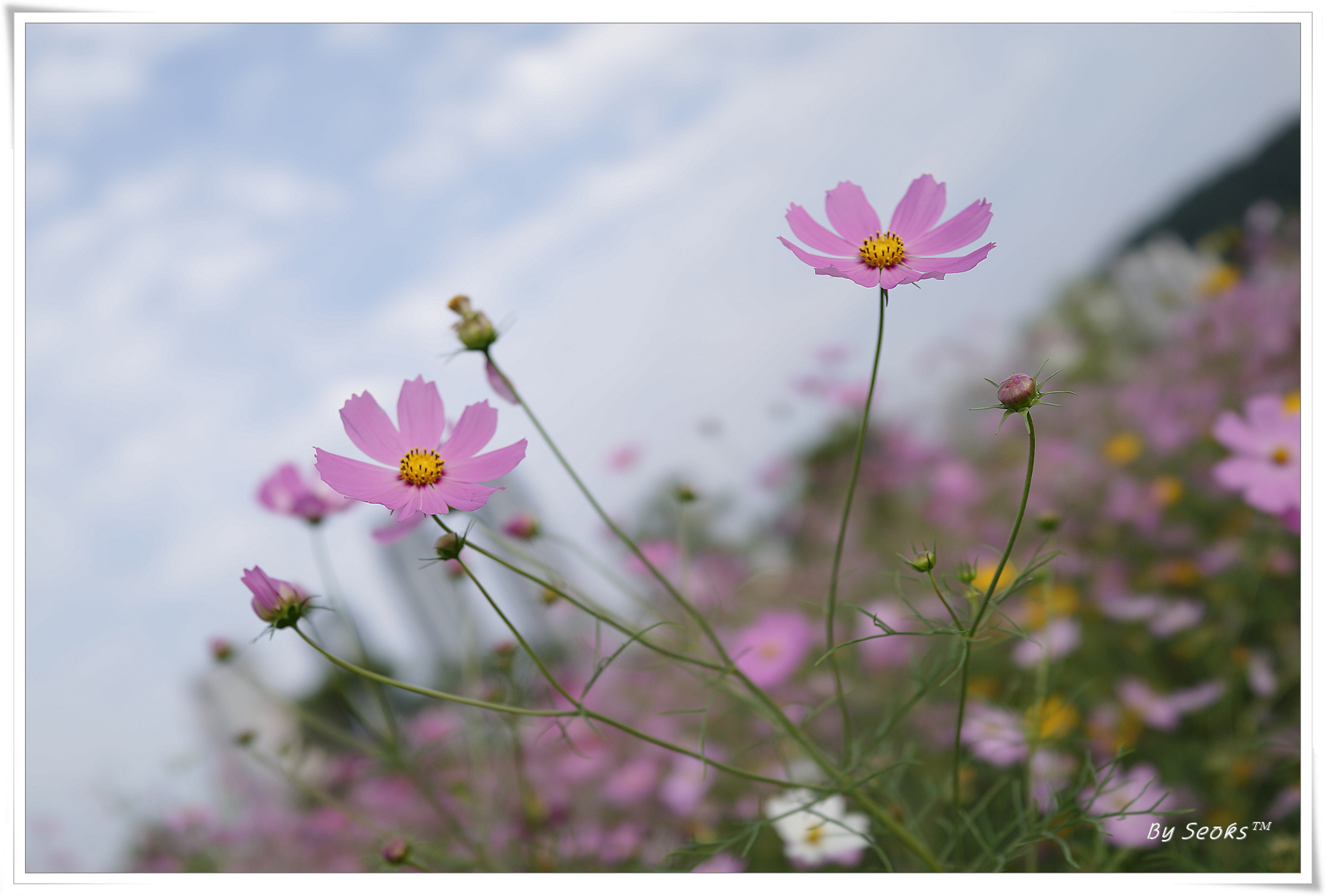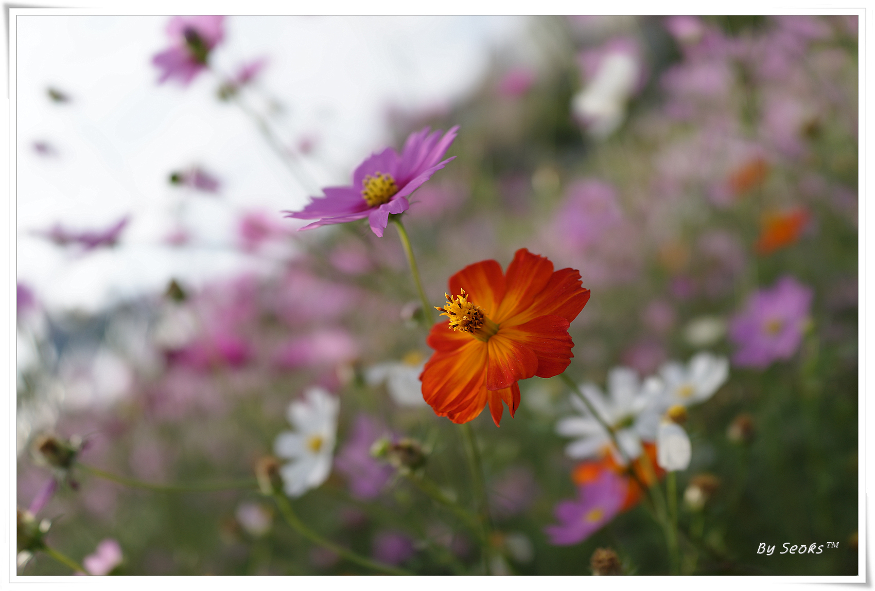 코스모스 사이를 걷다가 달달한 음료 한잔의 시간