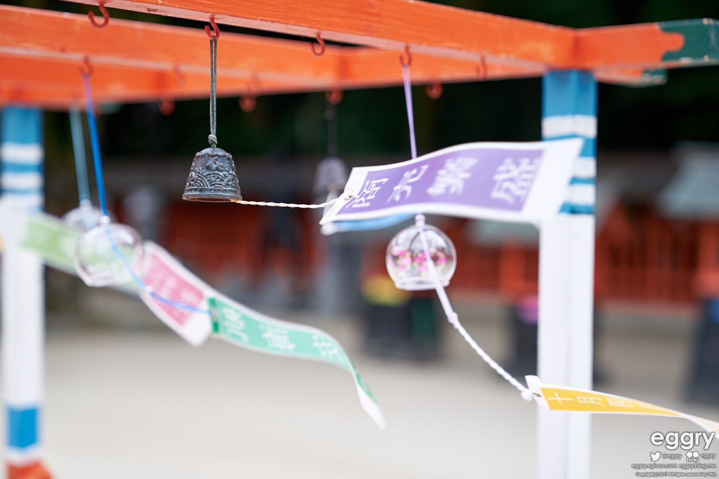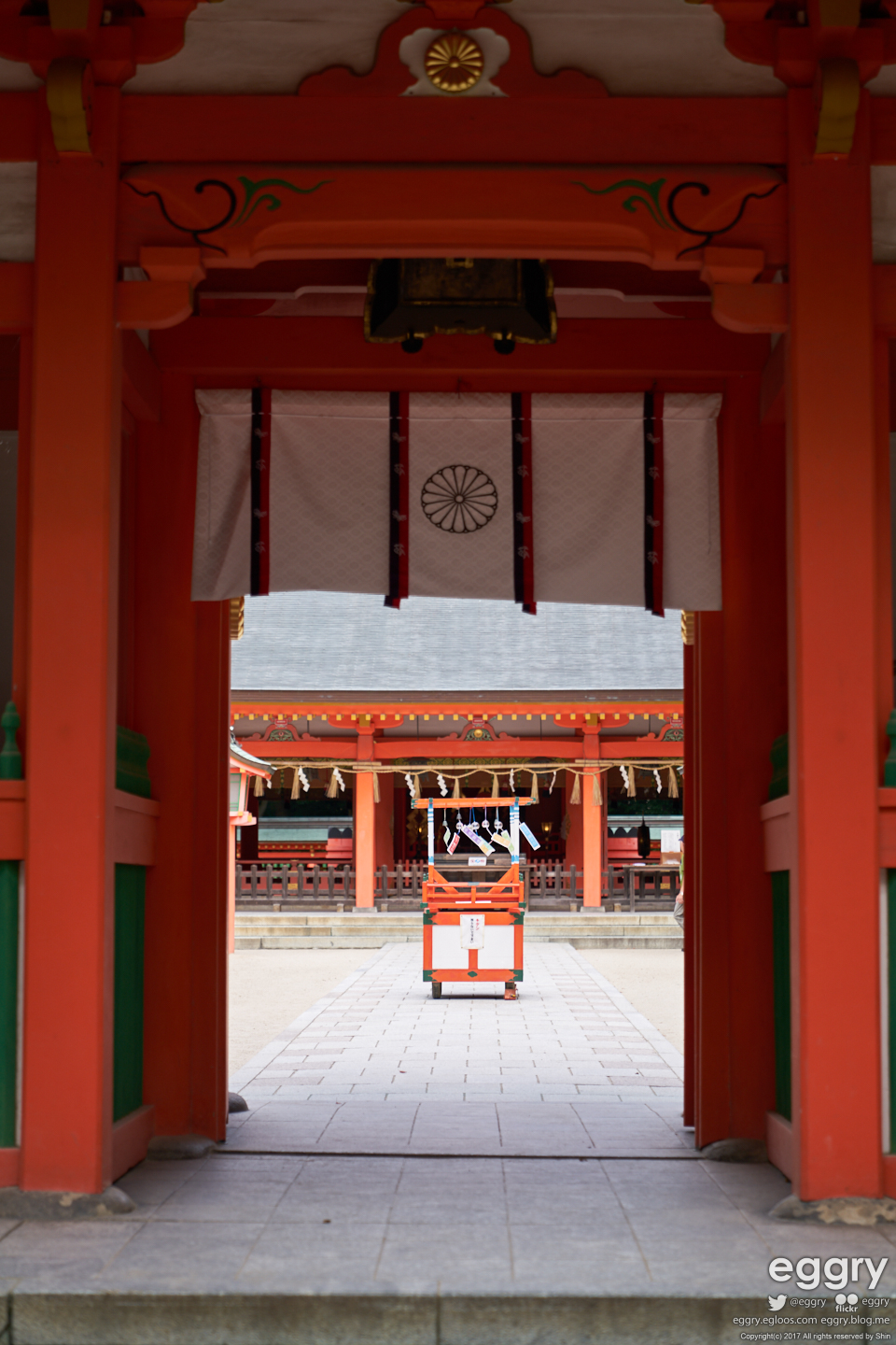 스미요시 신사의 본 건물. 참배로에 왠 풍경이 달려있는 수레를 놔뒀습니다.