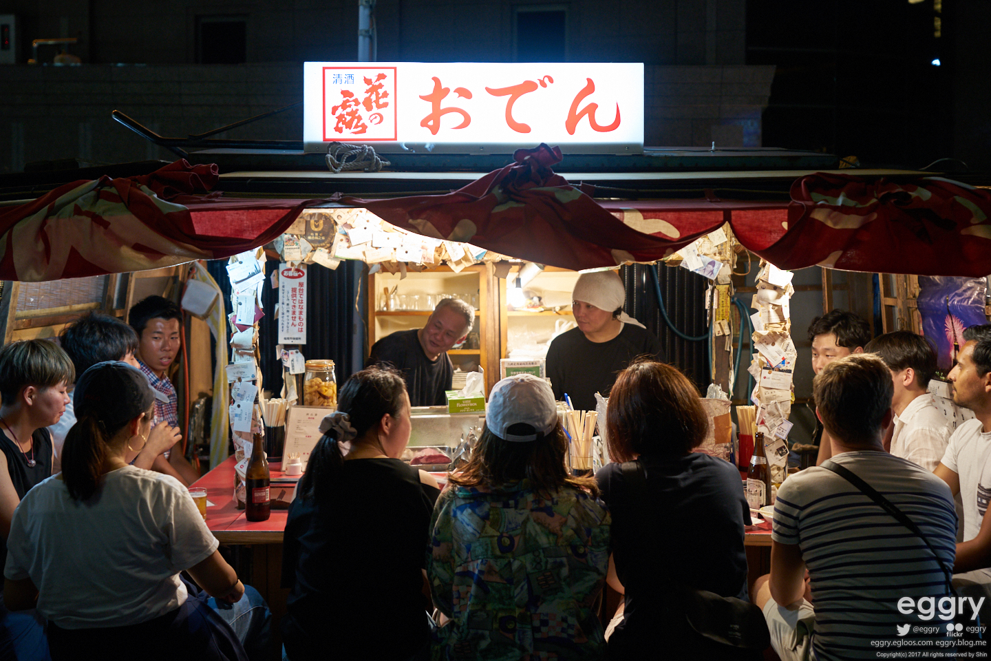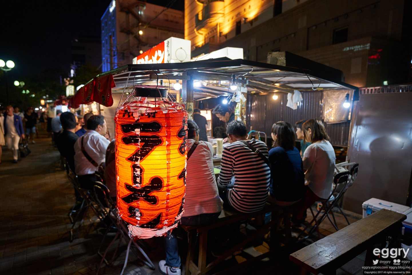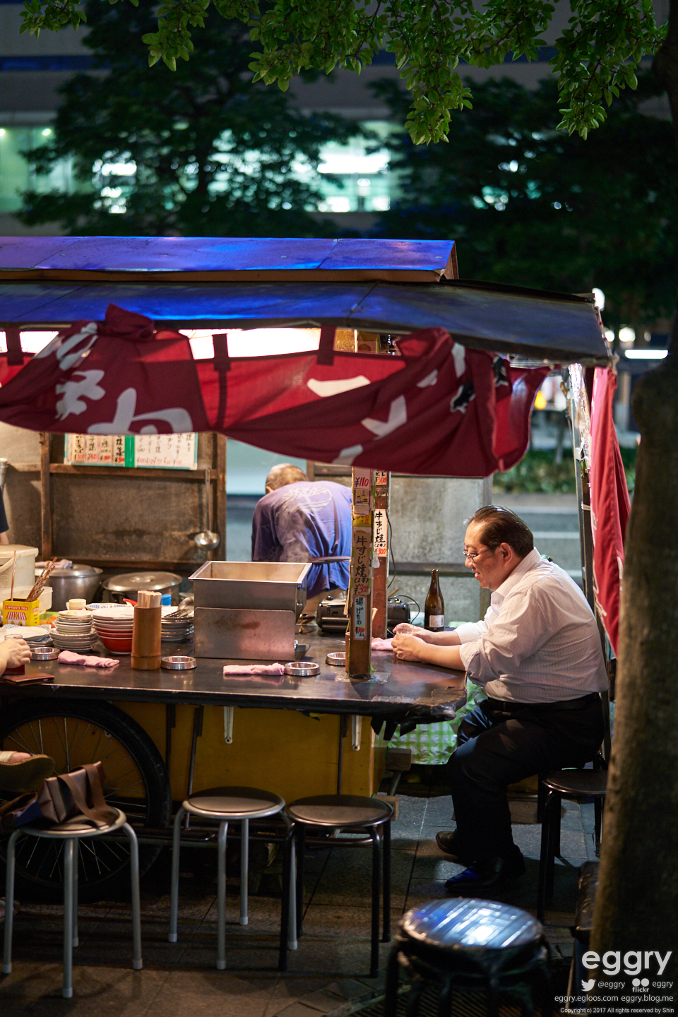 숙소 인근의 인도에 자리잡은 야타이. 퇴근 후 한잔 하는 듯한 아저씨가 인상적.