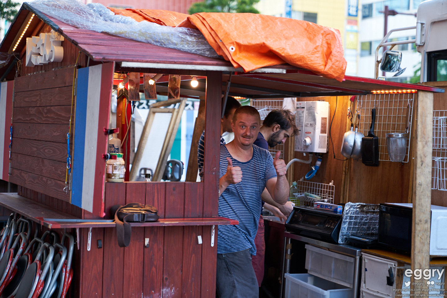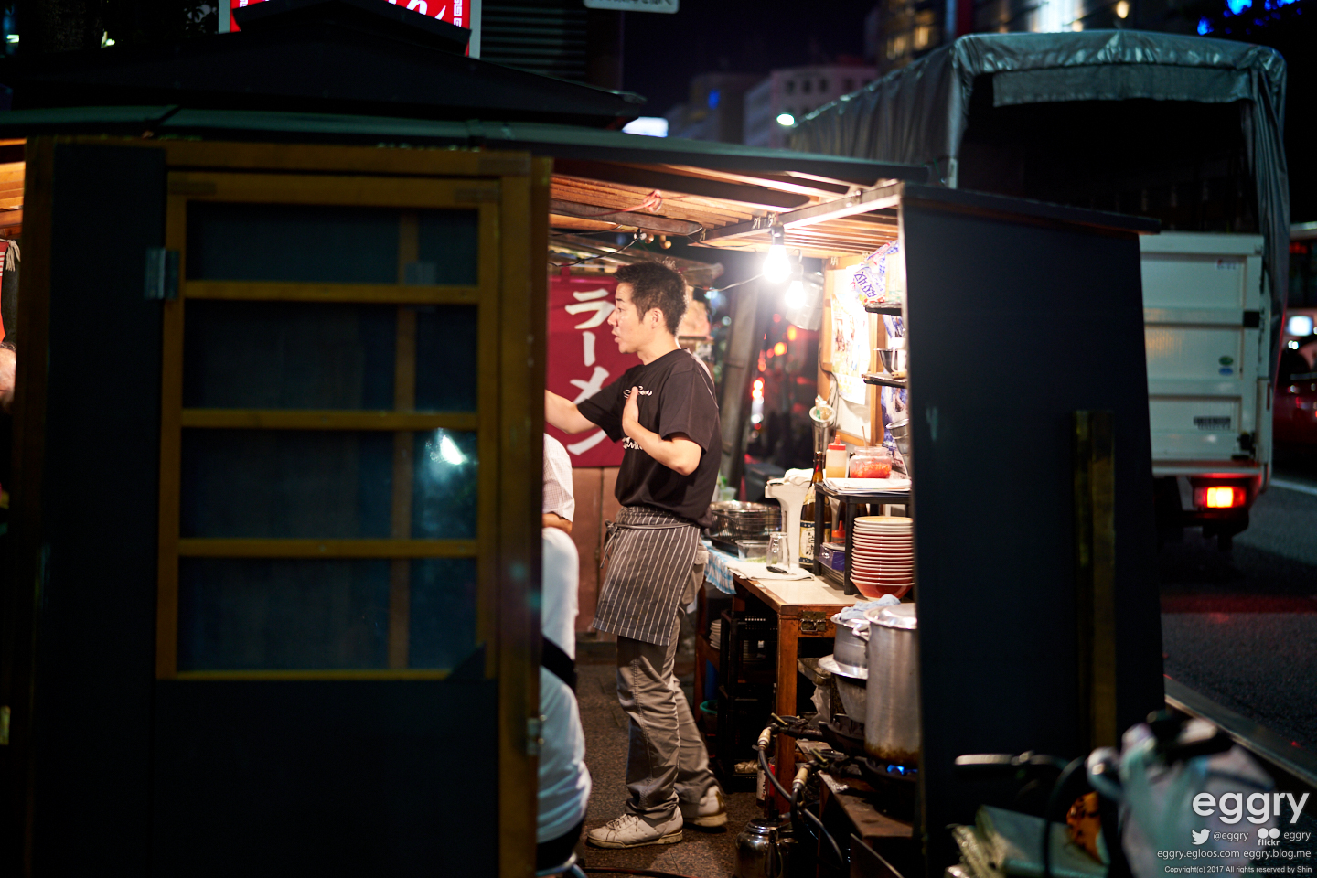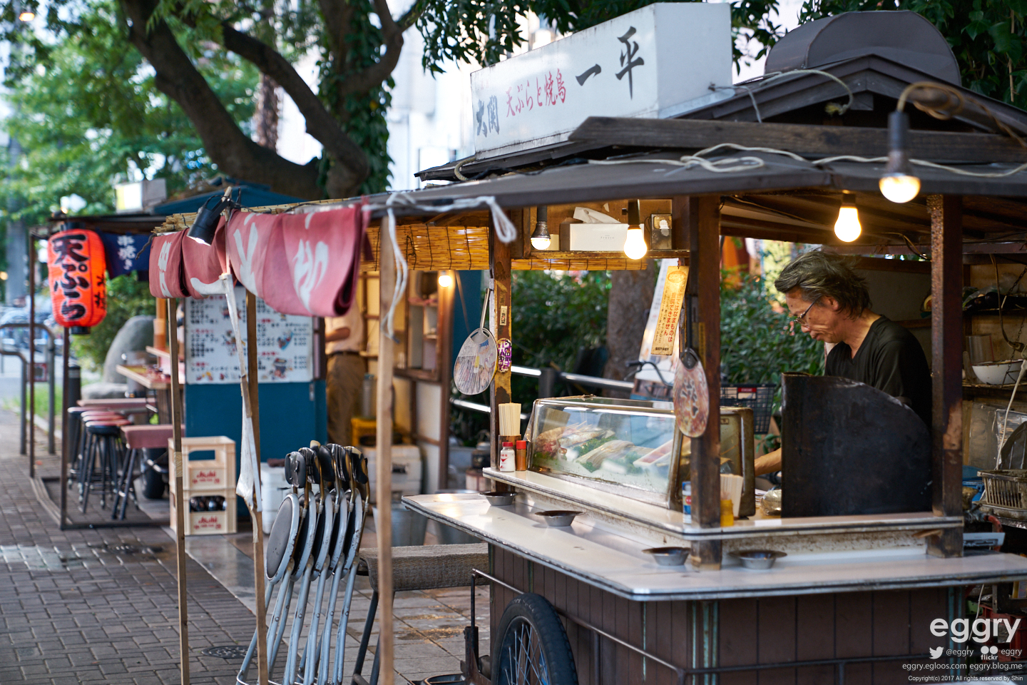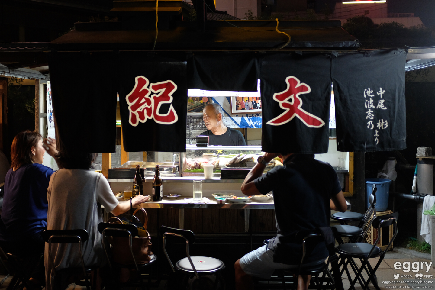 숙소 인근의 인도에 자리잡은 야타이. 퇴근 후 한잔 하는 듯한 아저씨가 인상적.