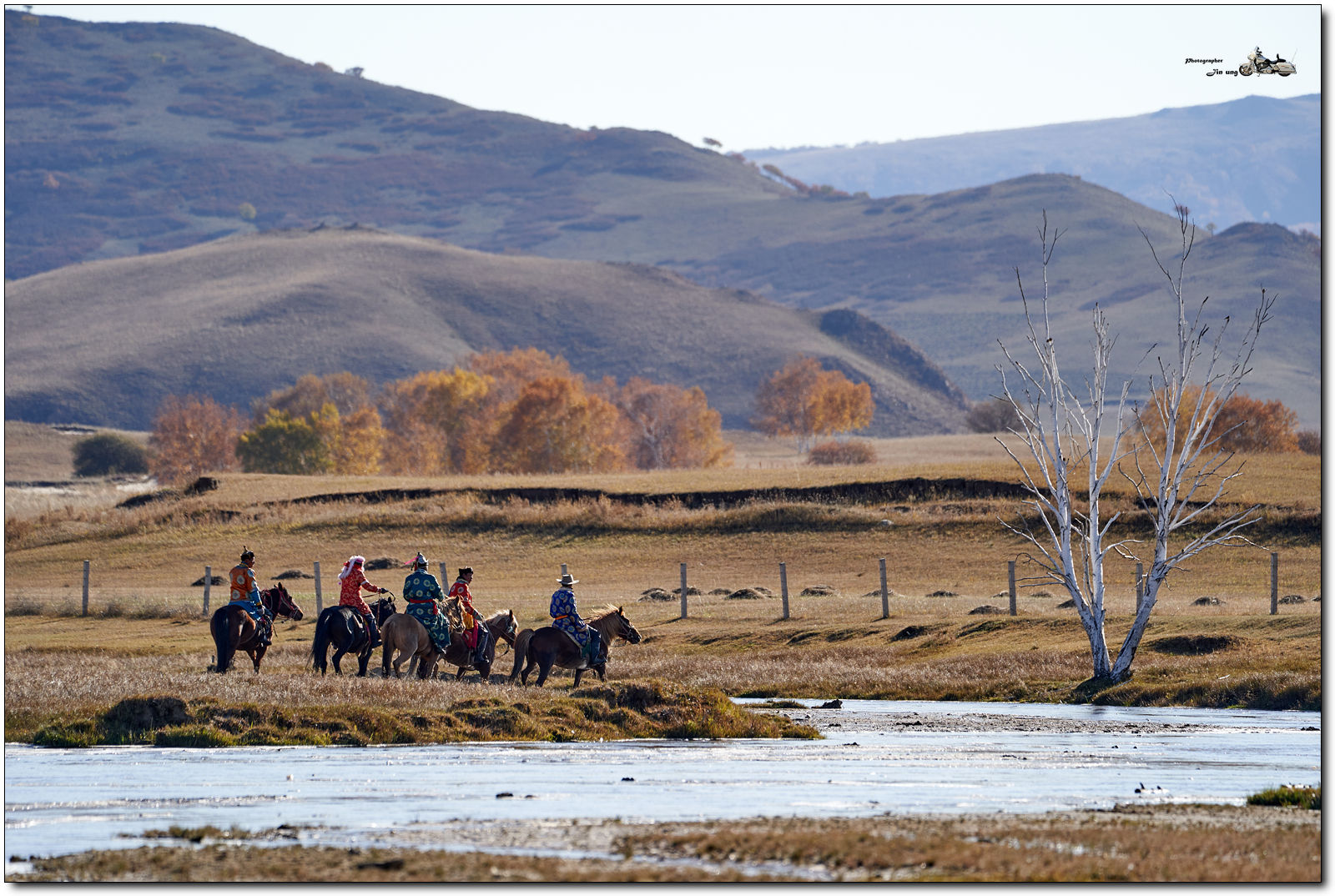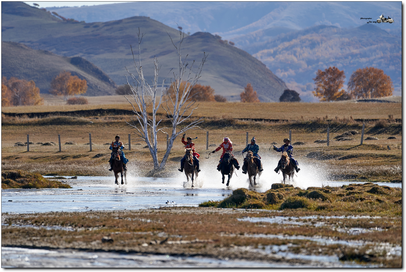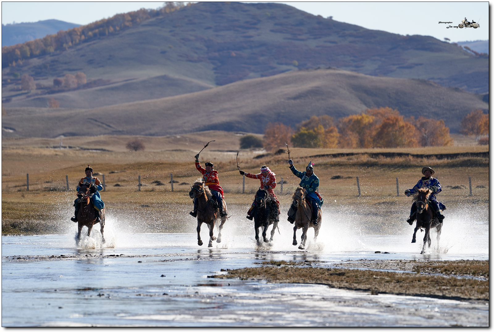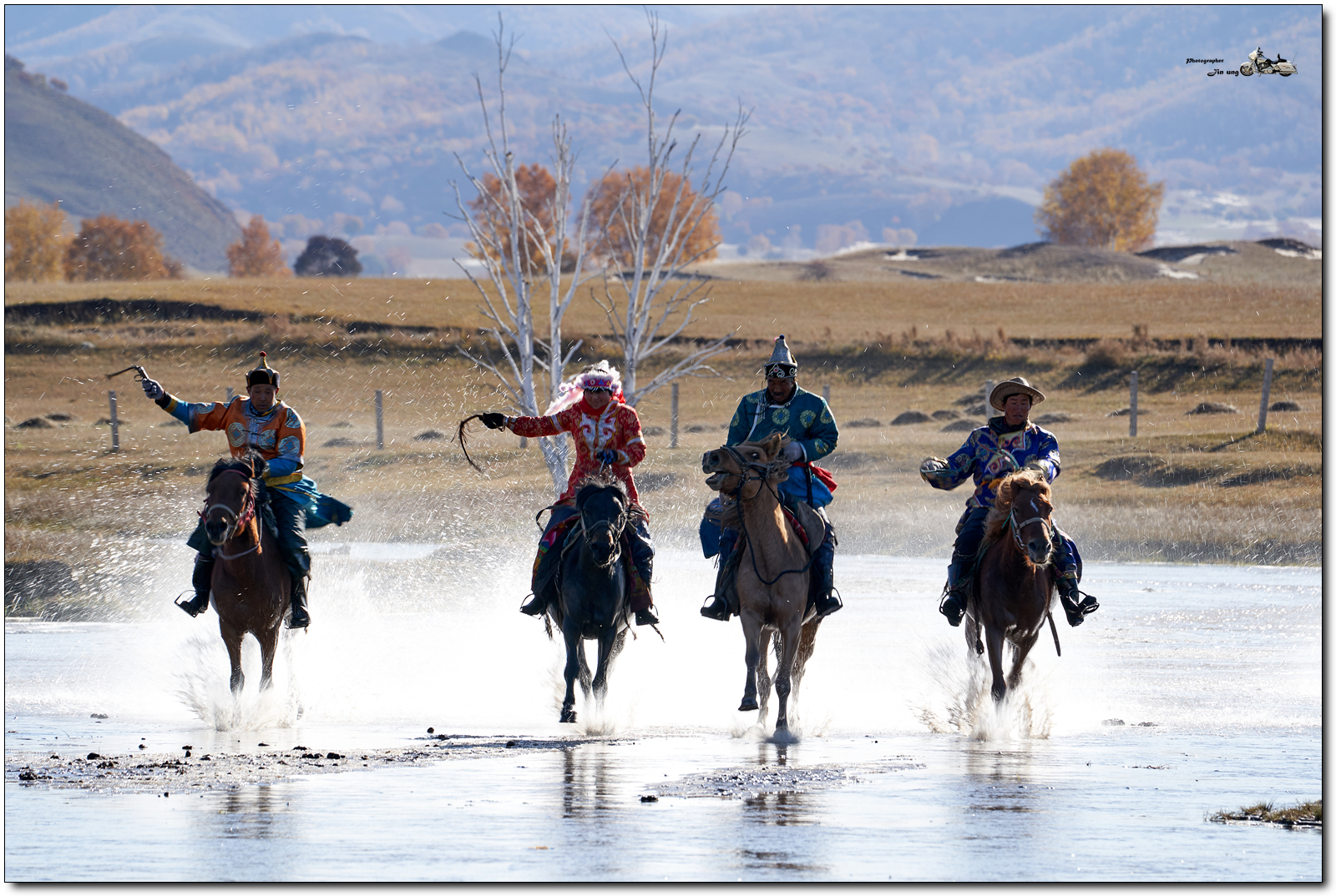 사진속 흰색 머리 장식에 빨간 의상은 여성 기수.