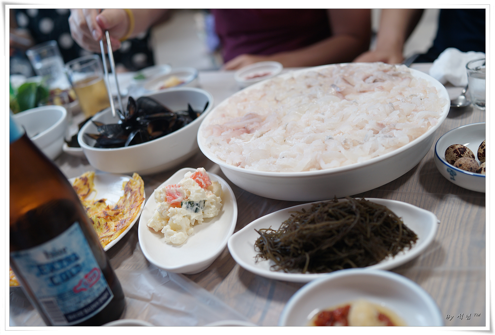 경주쪽에 횟집에서 그리고 정자해변의 커피숍에서의 시간