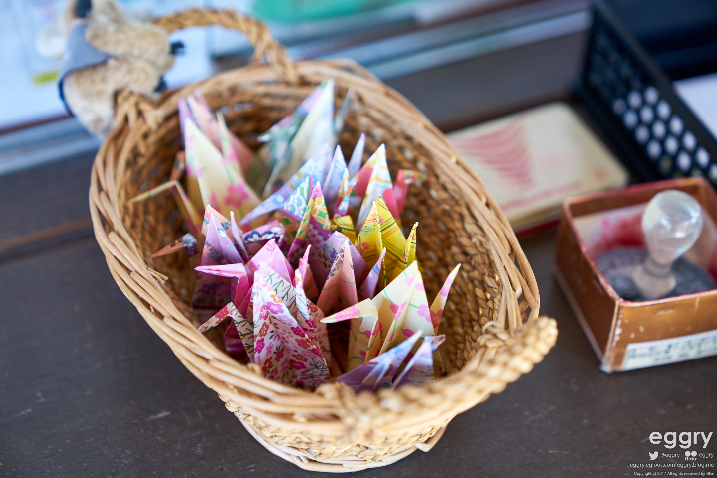 티켓과 매표소 옆의 왠지 모를 종이학 바구니. 손님은 별로 없어 보입니다. 평일이긴 하지만...