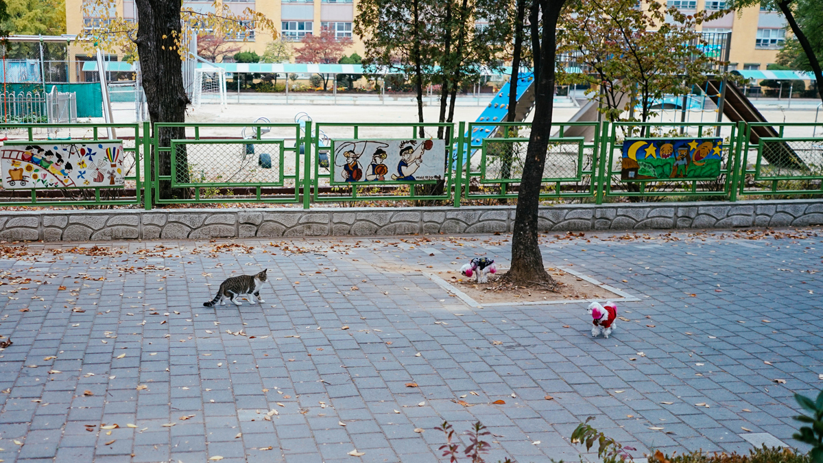 아이들 놀고 있는 놀이터에 가면 두마리 이상의 개를 목줄 없이 데리고 나와서