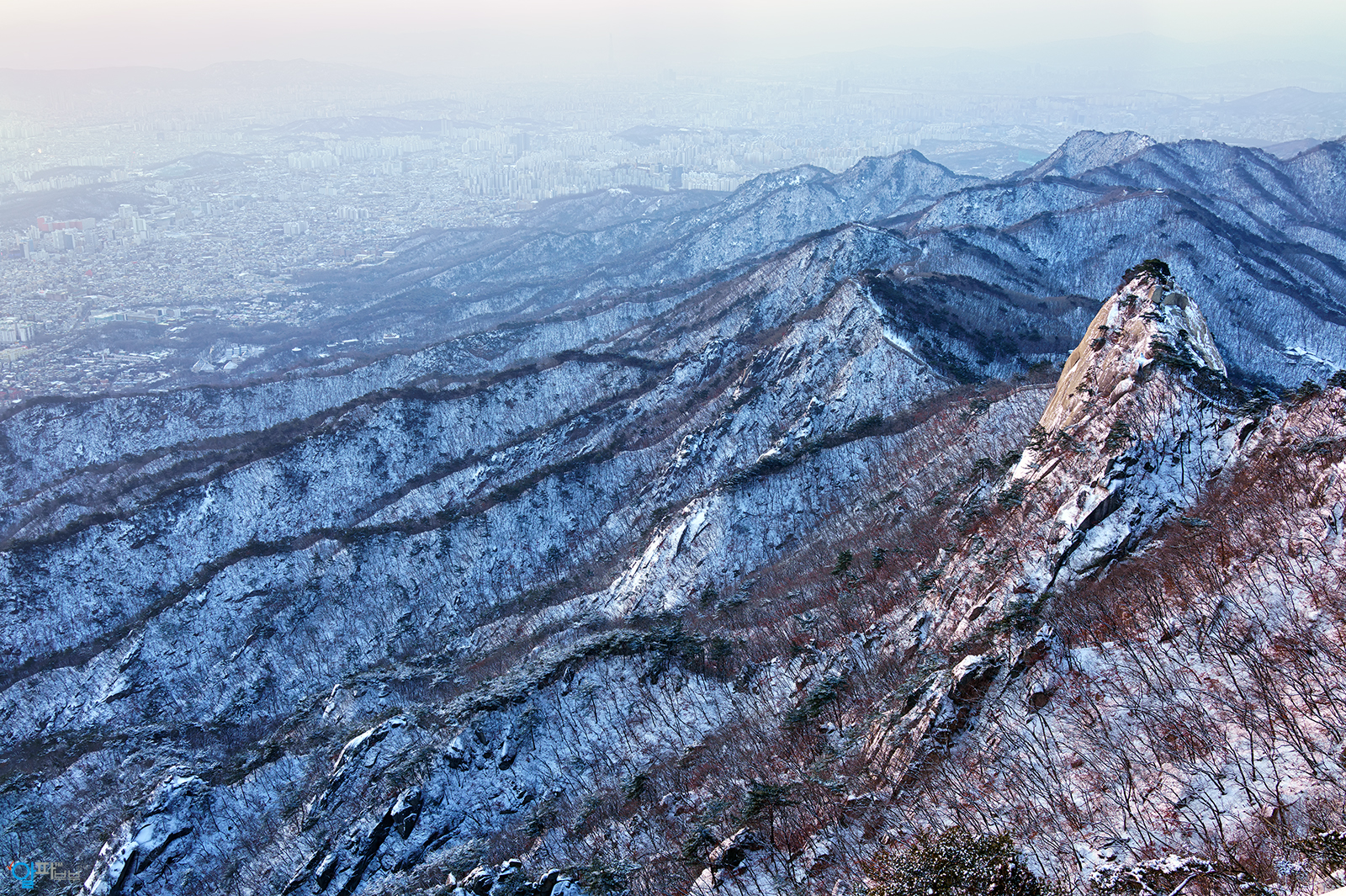 ▲ 북한산 암릉에 오르면 발아래 남경(지금의 서울)의 전경이 펼쳐지고 저 멀리 한강이 그리고 그 너머 관악산이 보였다
