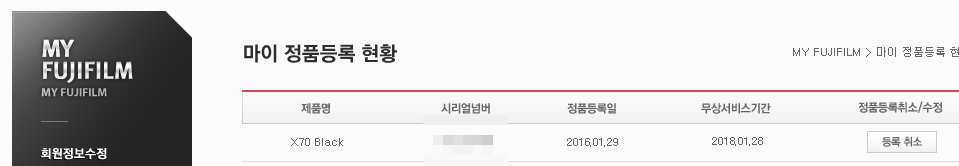 정품등록/보증기간 2018년 1월 28일까지인 상태입니다.